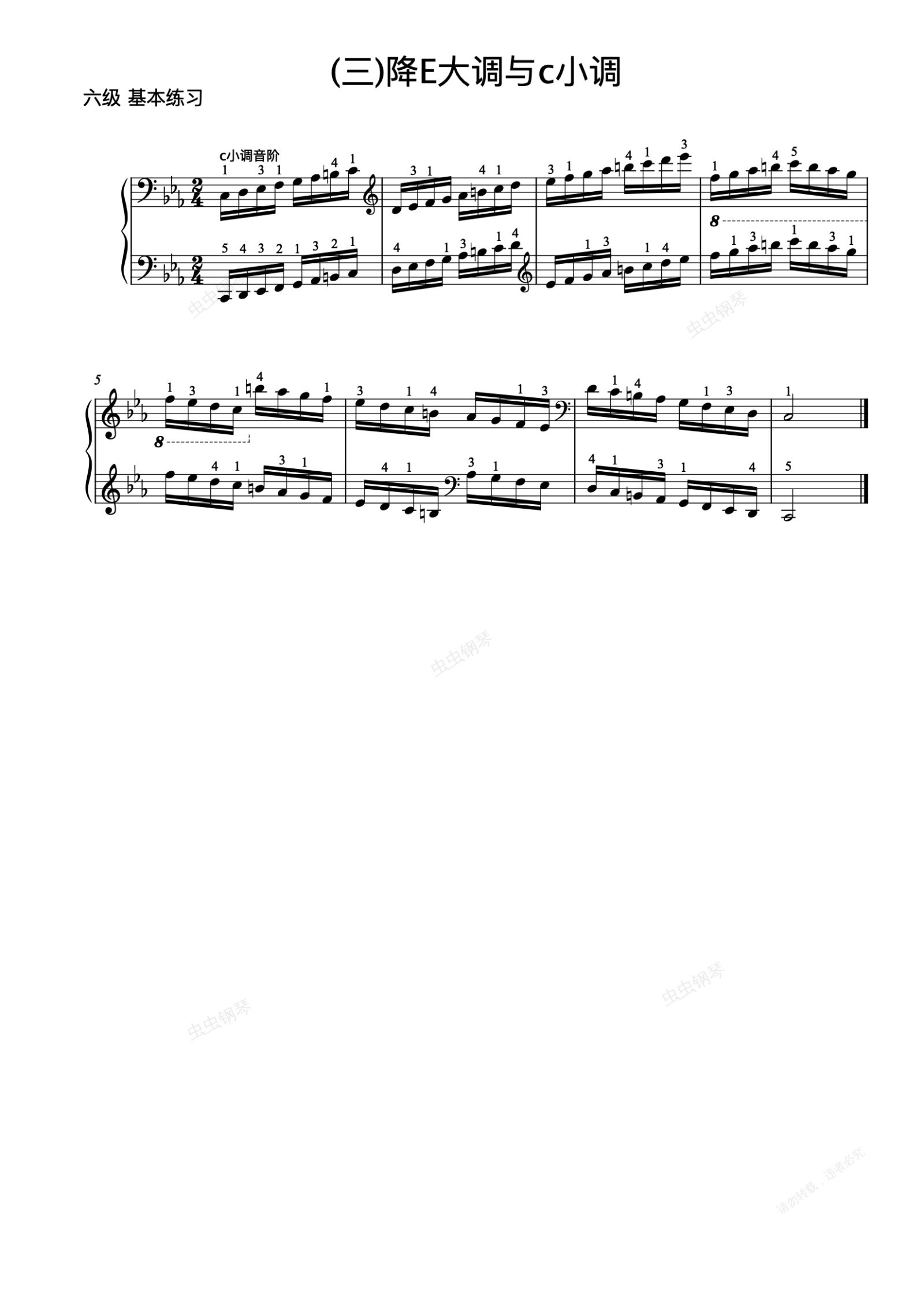 钢琴谱:6级-10-c小调音阶
