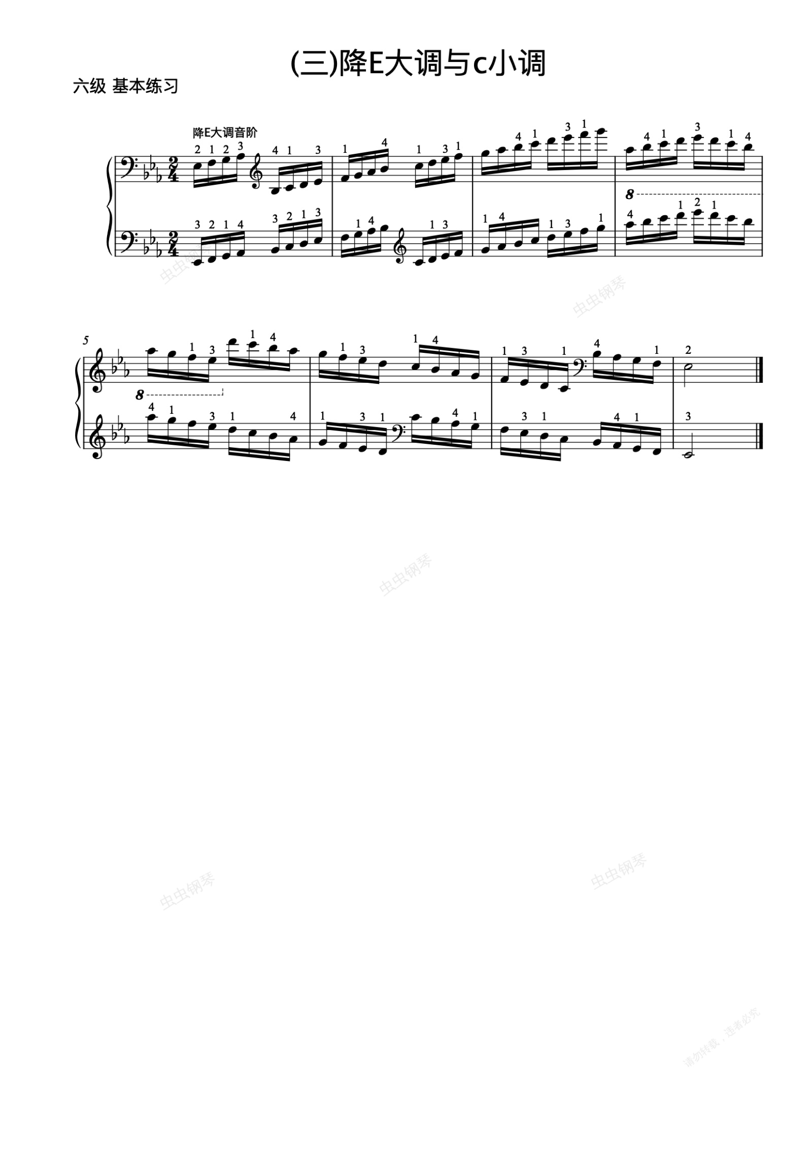 钢琴谱:6级-9-降E大调音阶