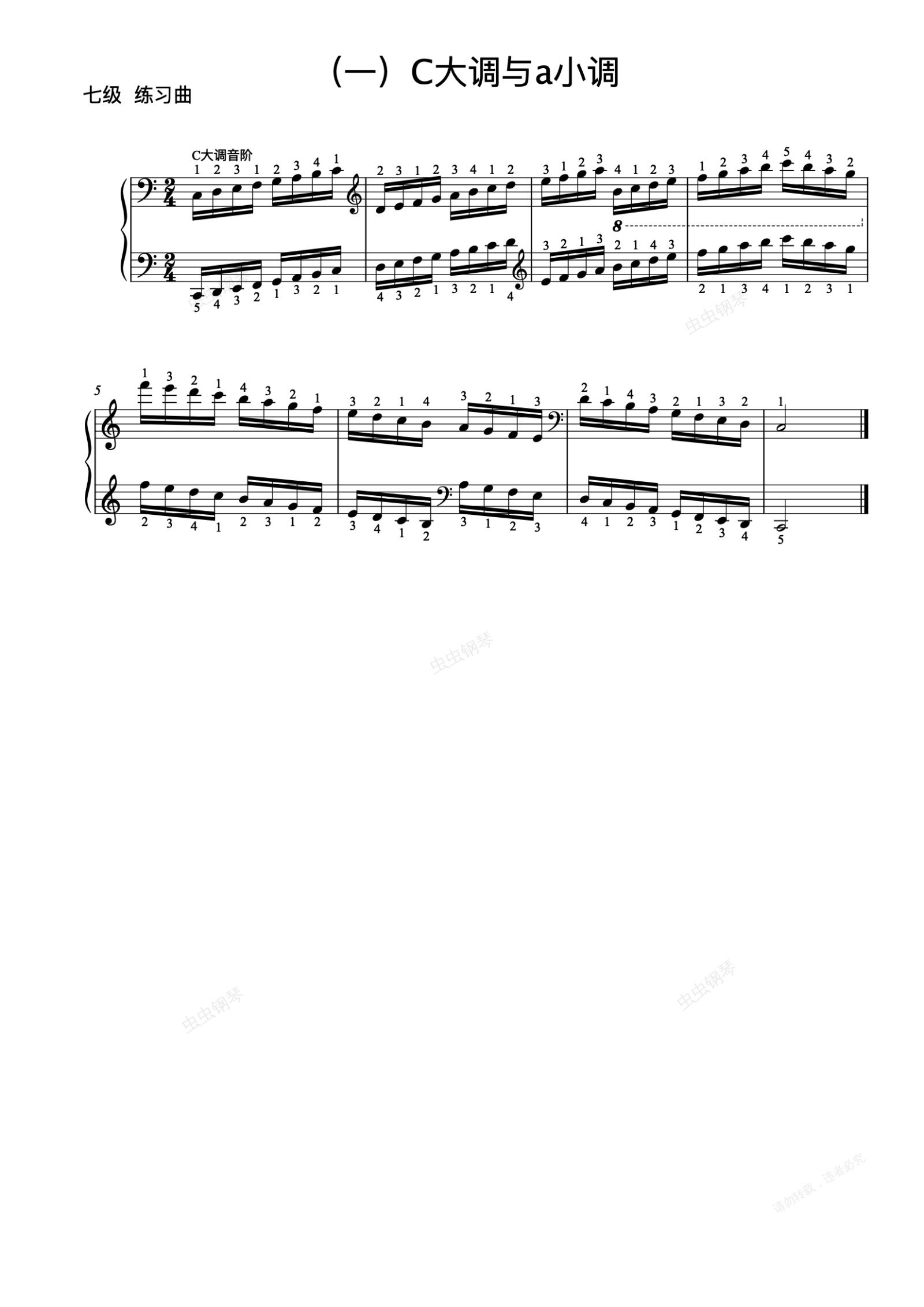 钢琴谱:7级-1-C大调音阶