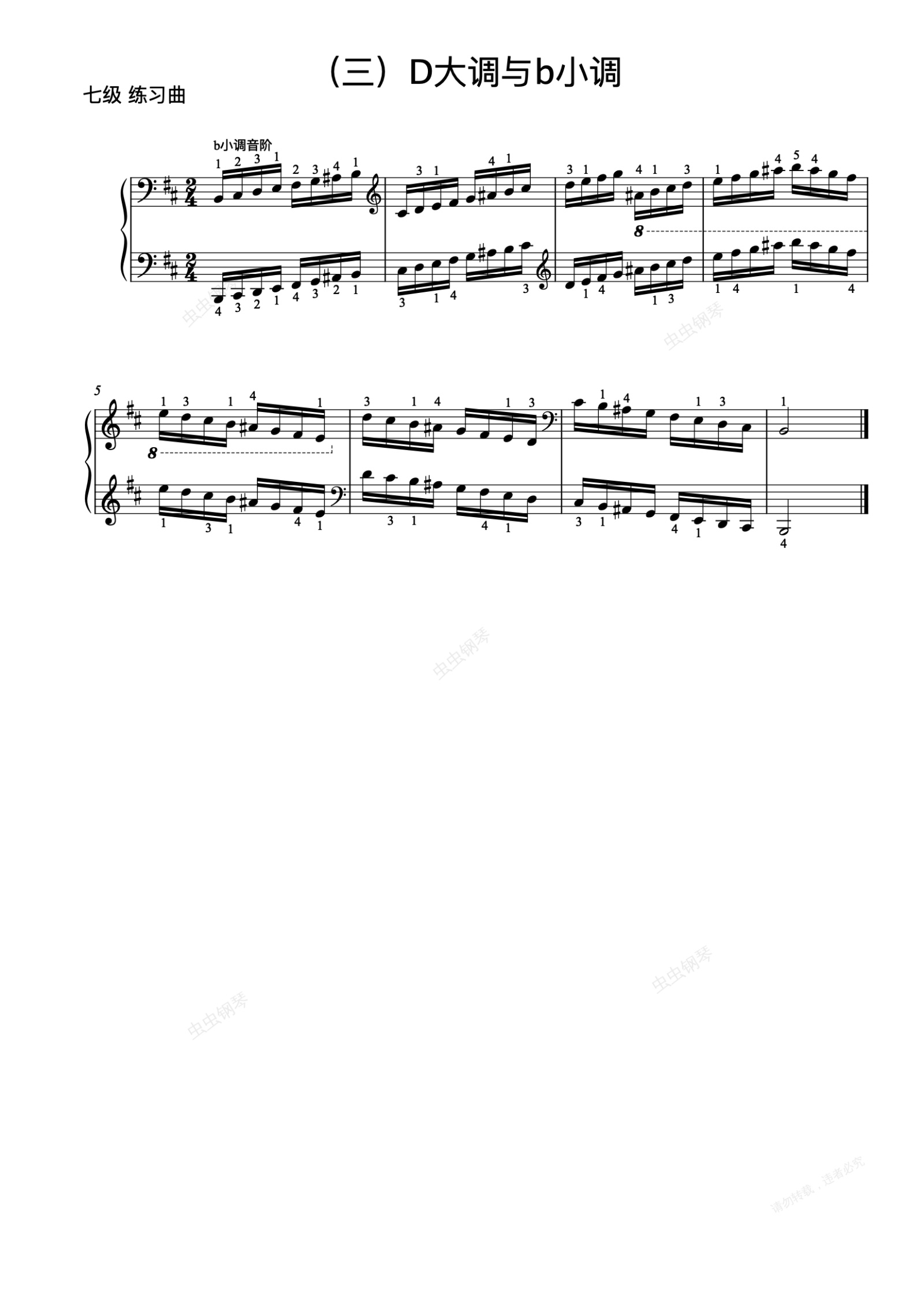 钢琴谱:7级-14-b小调音阶