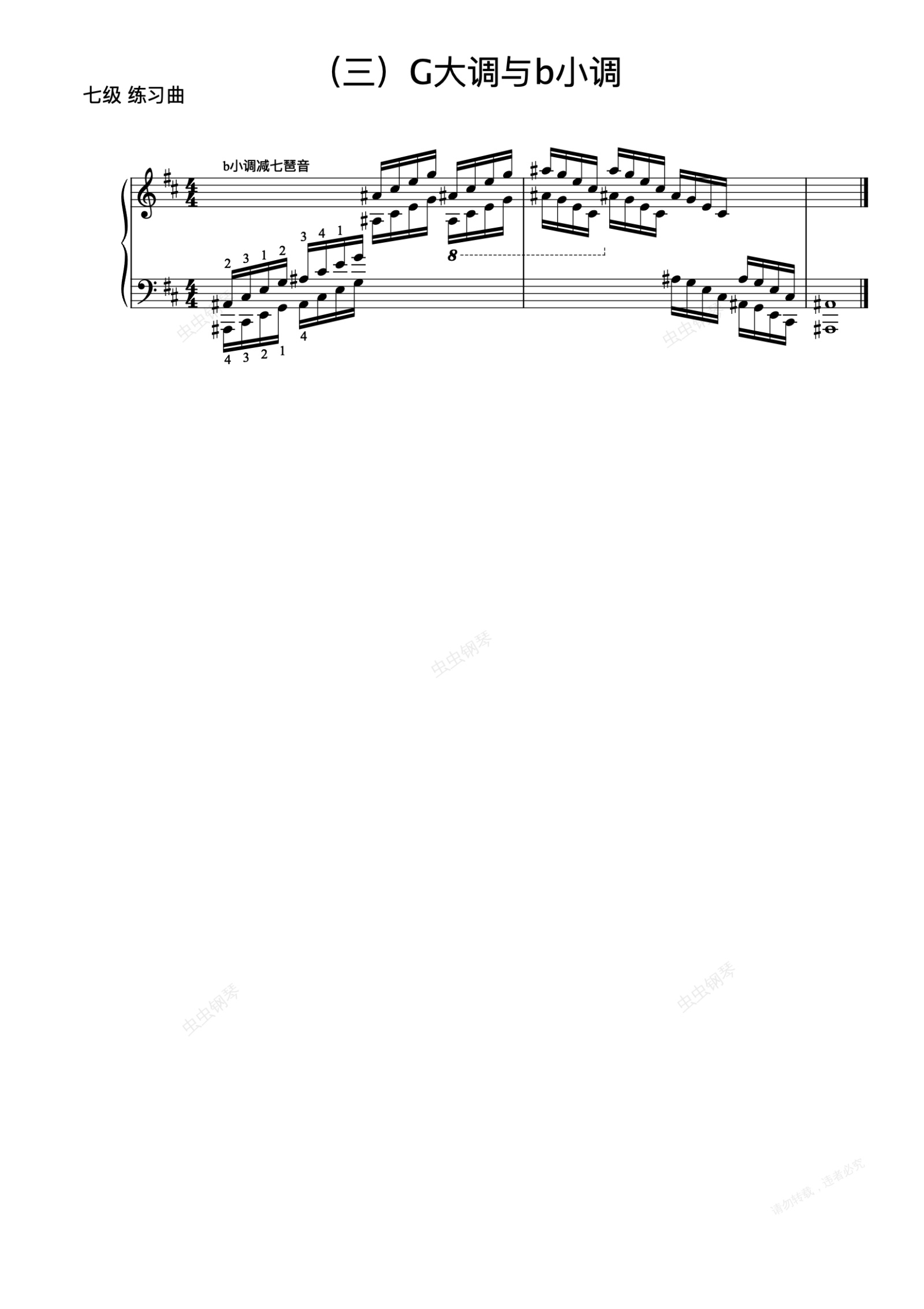 钢琴谱:7级-18-b小调减七琶音