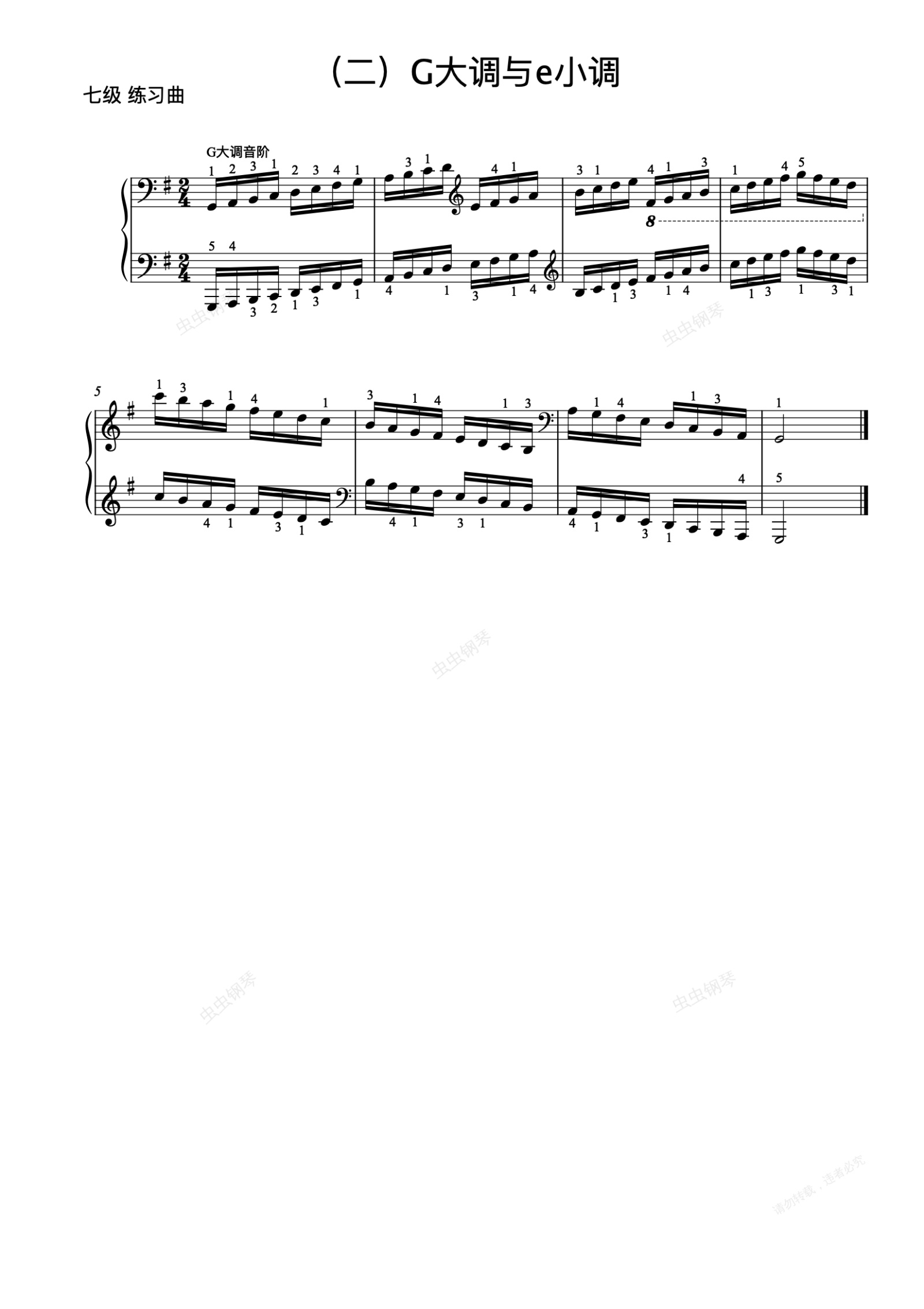 钢琴谱:7级-7-G大调音阶