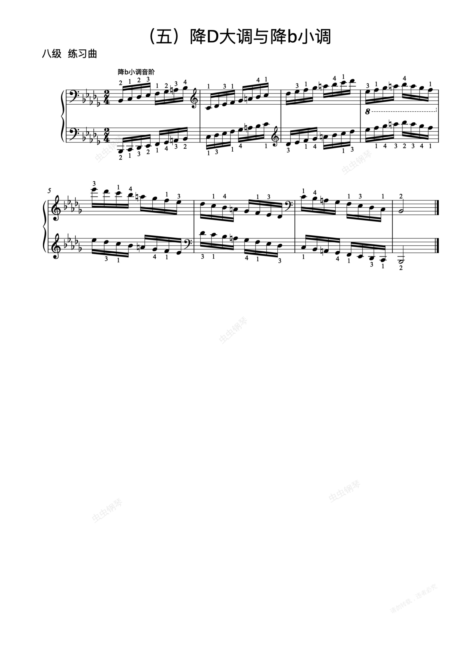 钢琴谱:8级-26-降b小调音阶