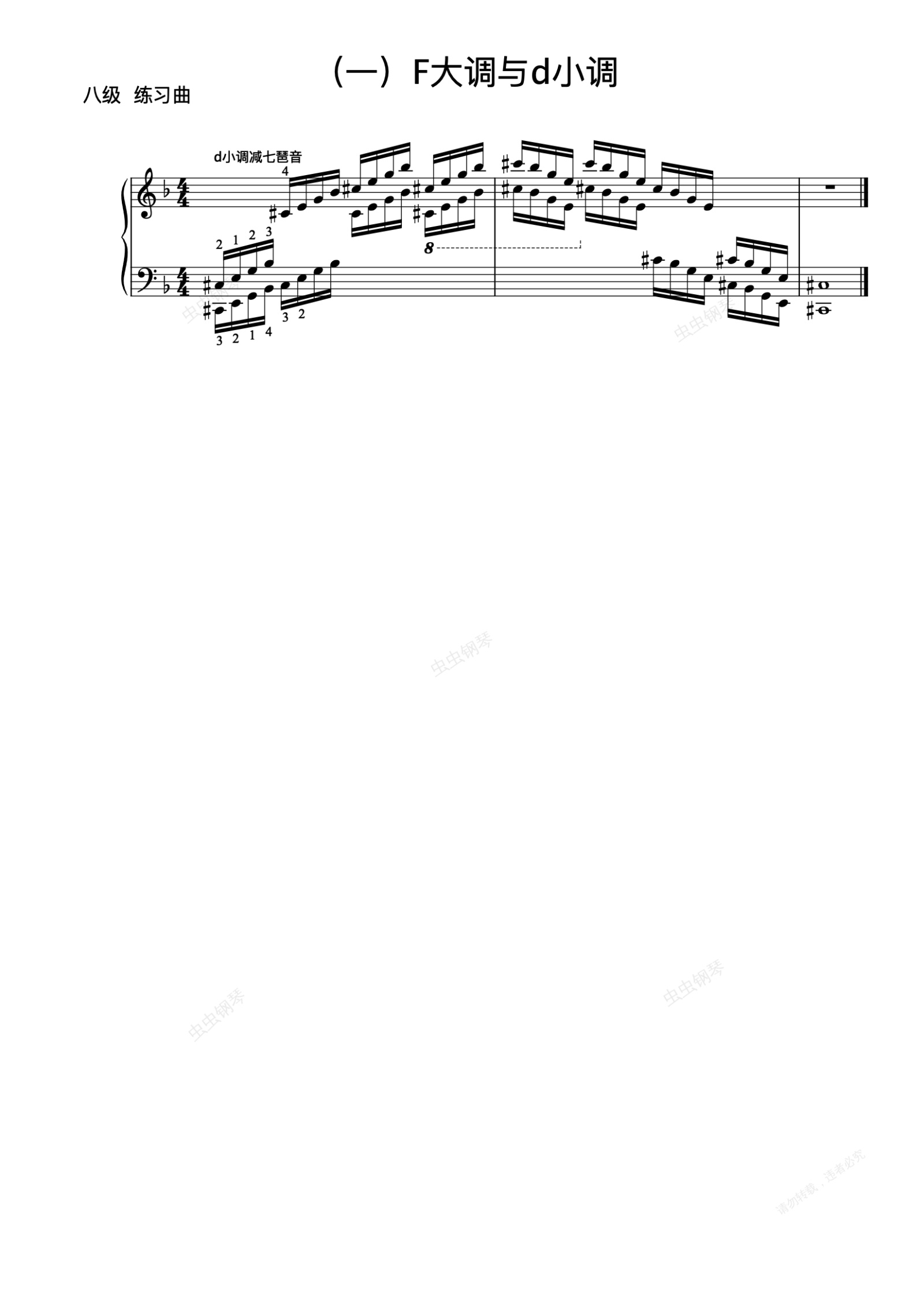 钢琴谱:8级-6-d小调减七琶音