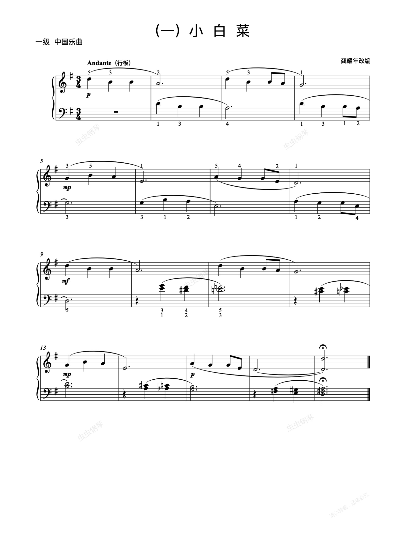 钢琴谱:1级-4-小白菜