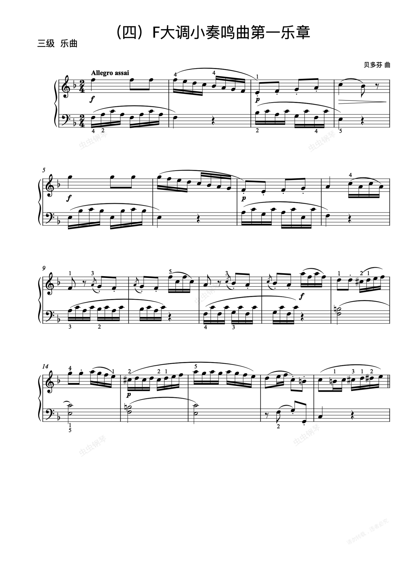 钢琴谱:3级-10-F大调小奏鸣曲第一乐章