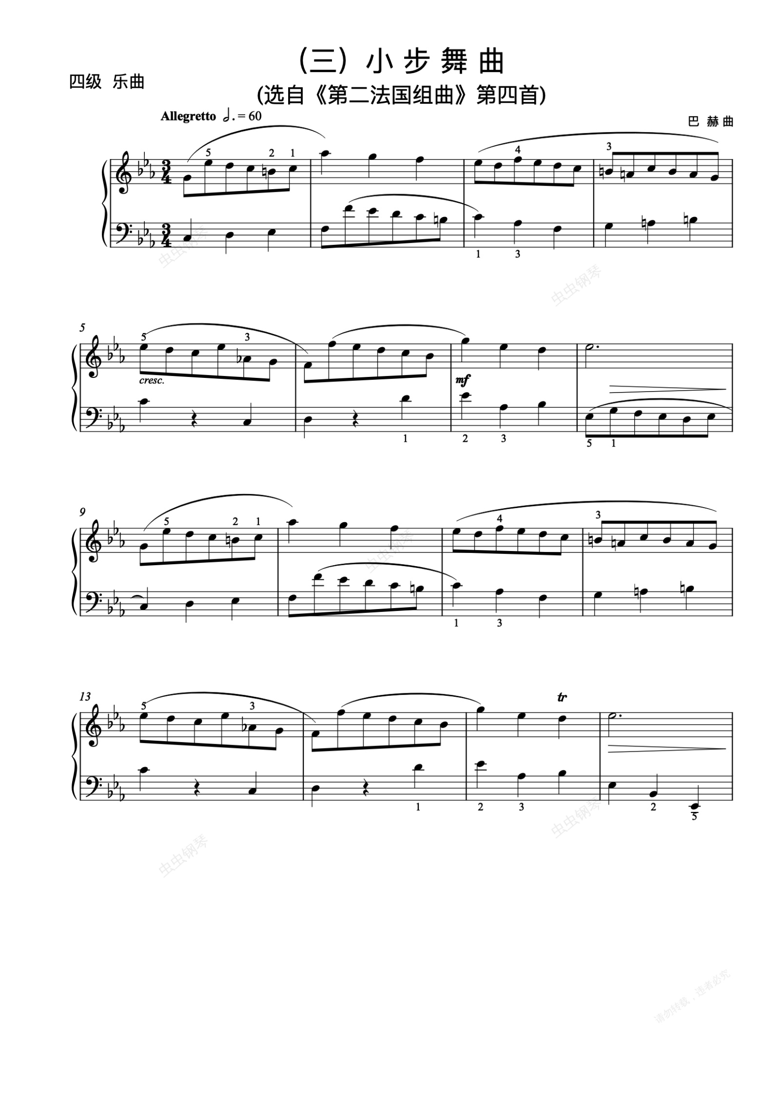 钢琴谱:4级-6-小步舞曲(选自《第二法国组曲》第四首)