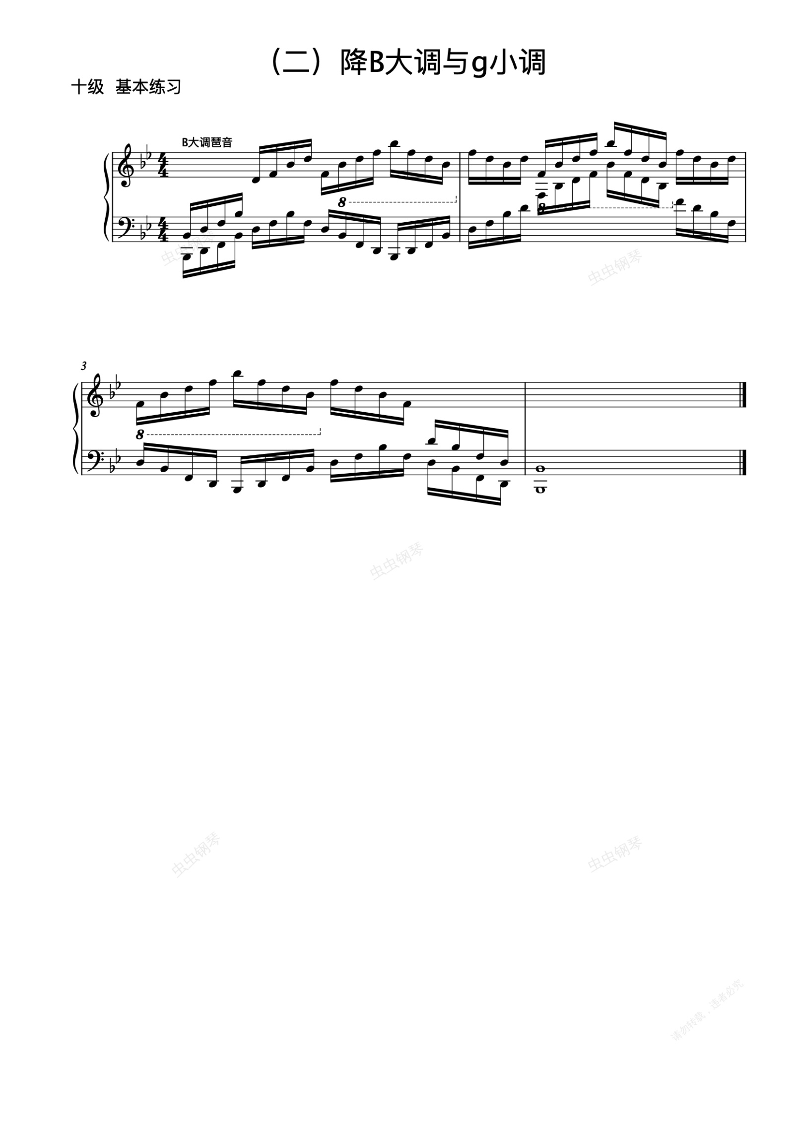钢琴谱:10级-9-降B大调琶音