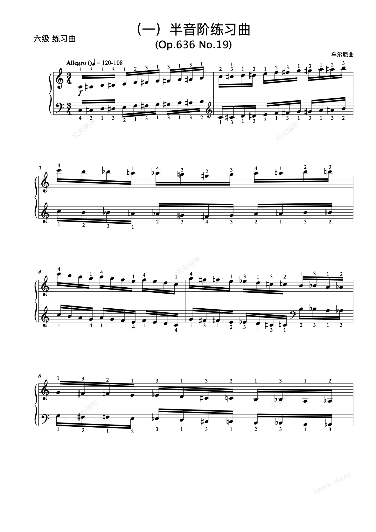 钢琴谱:6级-1-半音阶练习曲Op.636-No.19