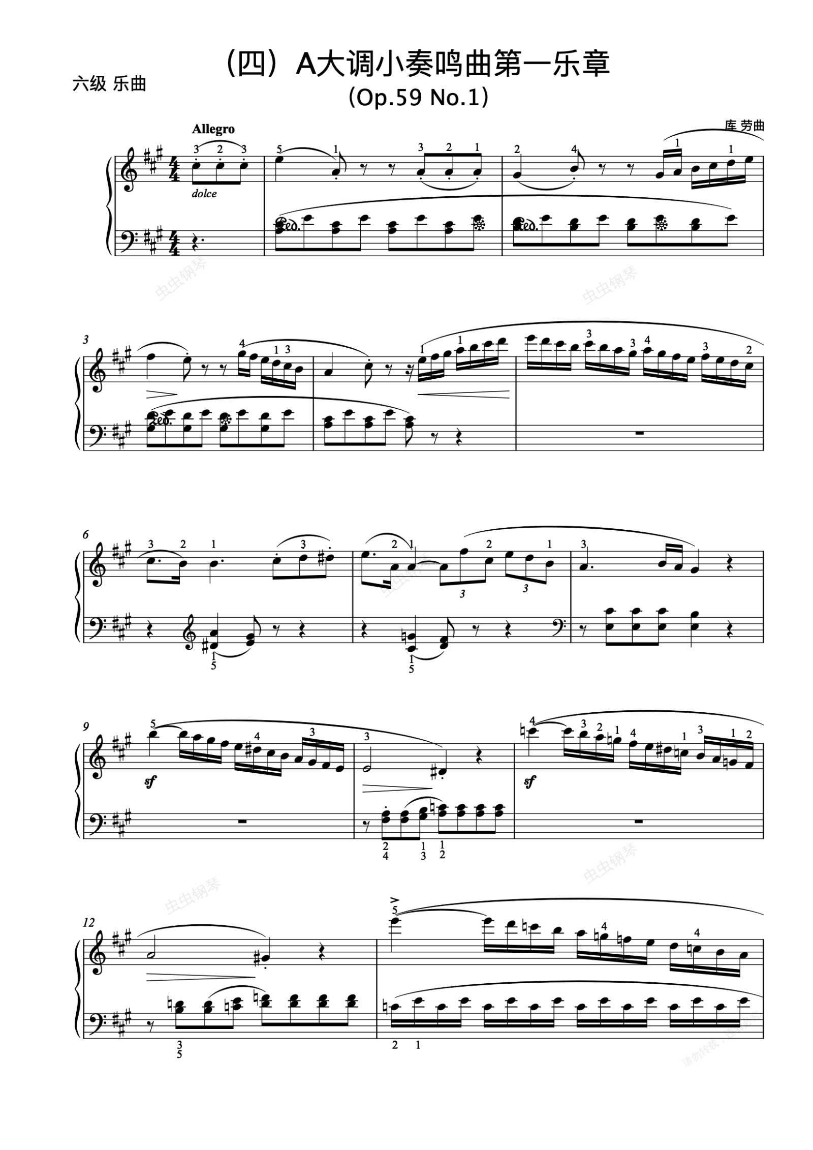 钢琴谱:6级-10-A大调小奏鸣曲第一乐章