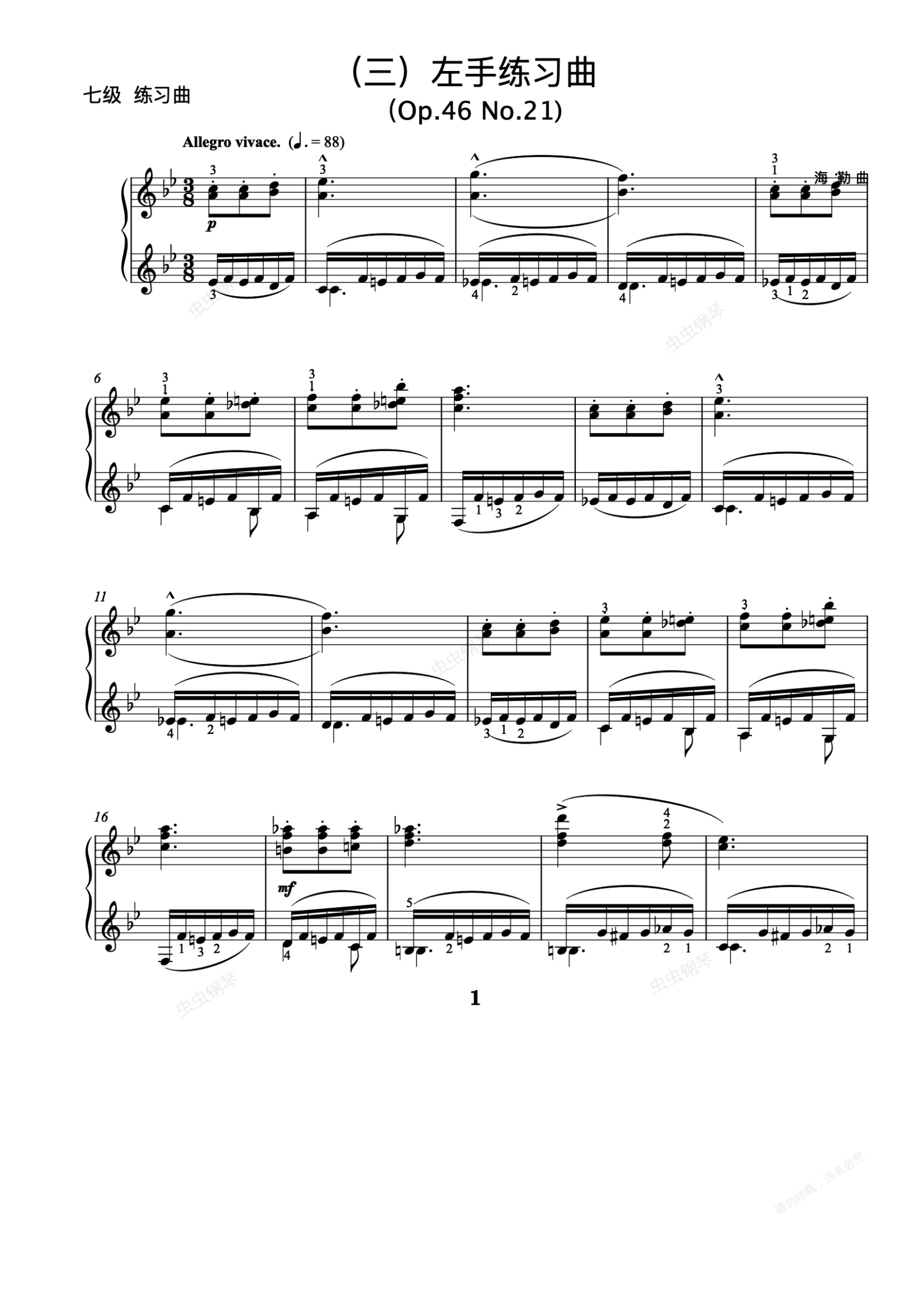 钢琴谱:7级-3-左手练习曲Op.46-No.21