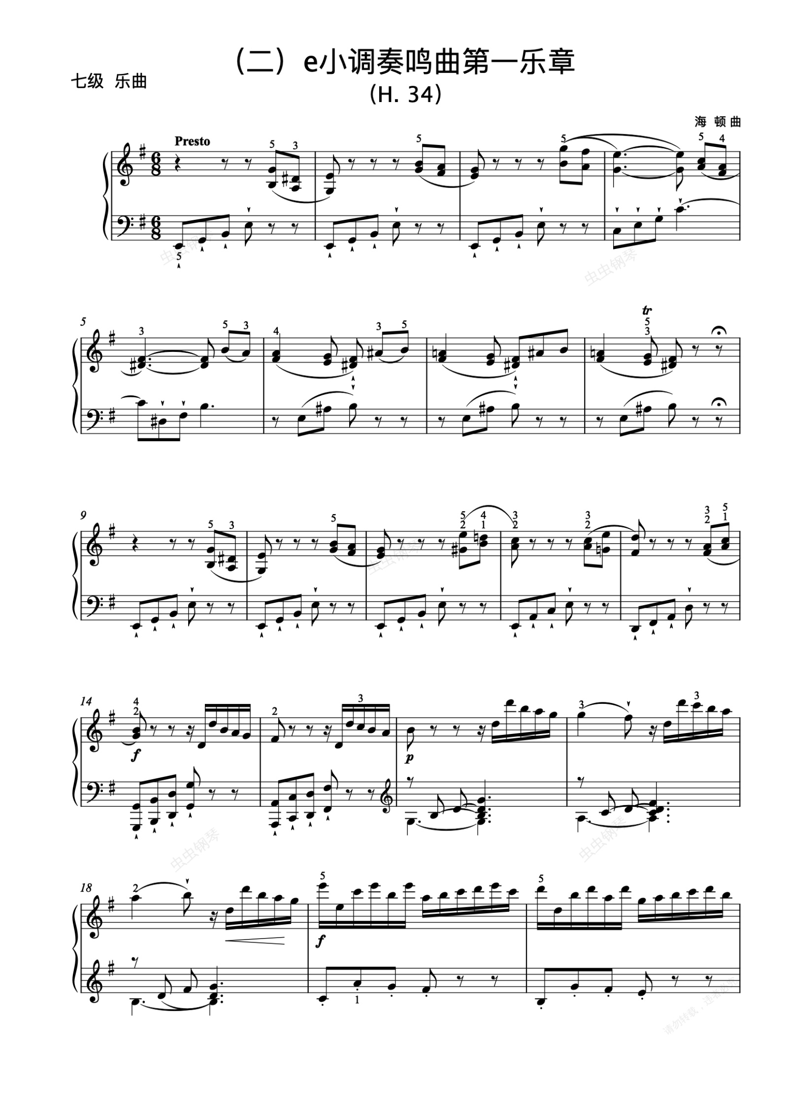 钢琴谱:7级-8-e小调奏鸣曲第一乐章