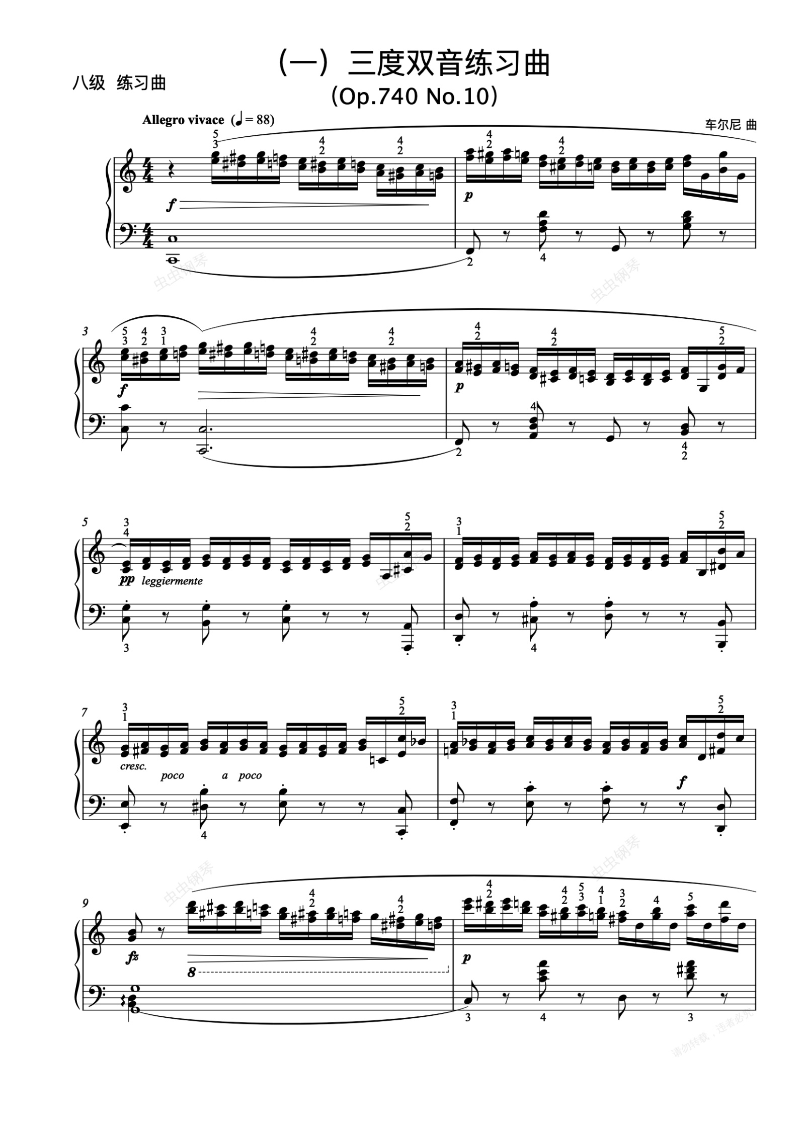 钢琴谱:8级-1-三度双音练习曲Op.740-No.10