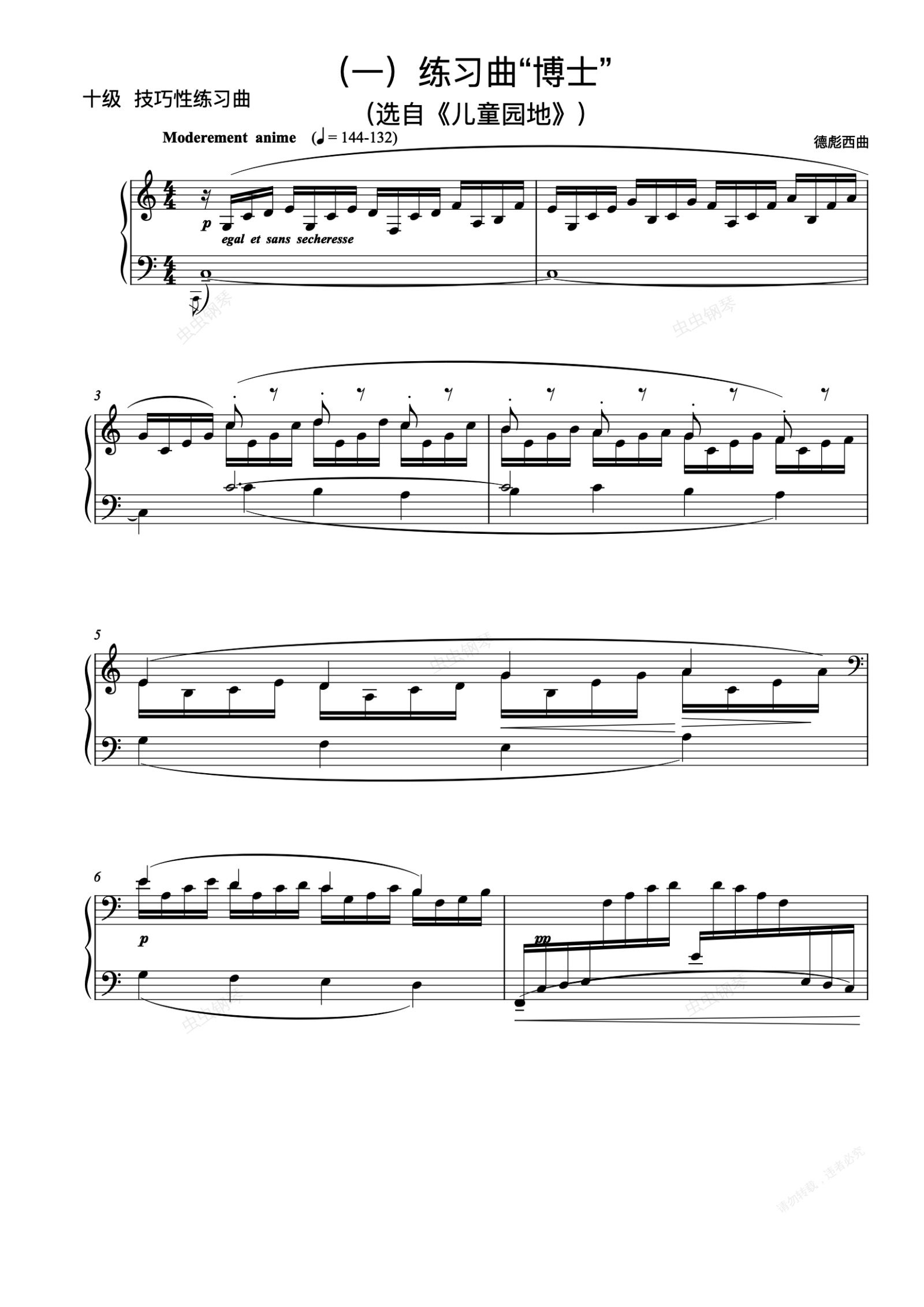 钢琴谱:10级-1-练习曲“博士”(选自《儿童园地》)