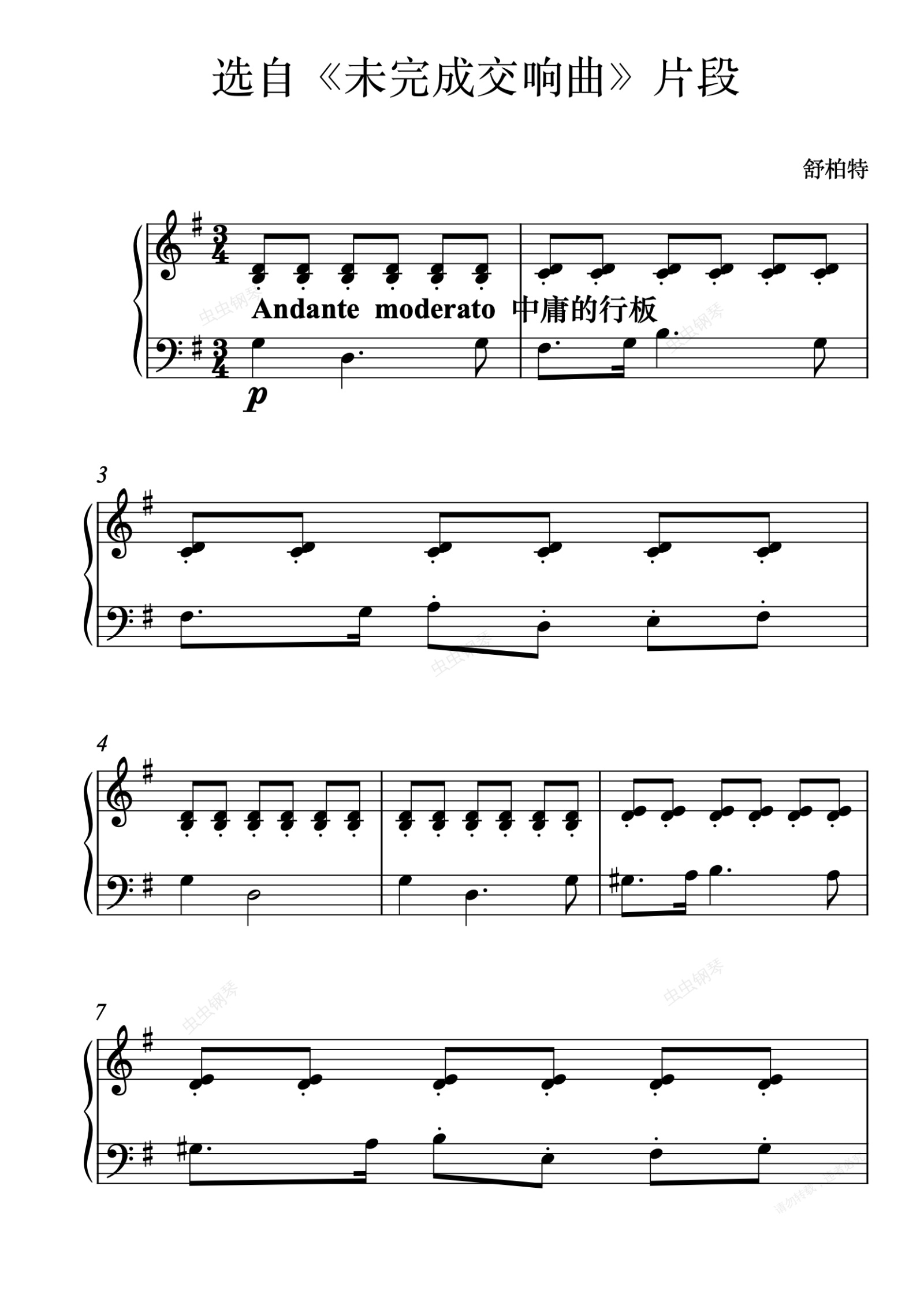 钢琴谱:10选自《未完成交响曲》片段