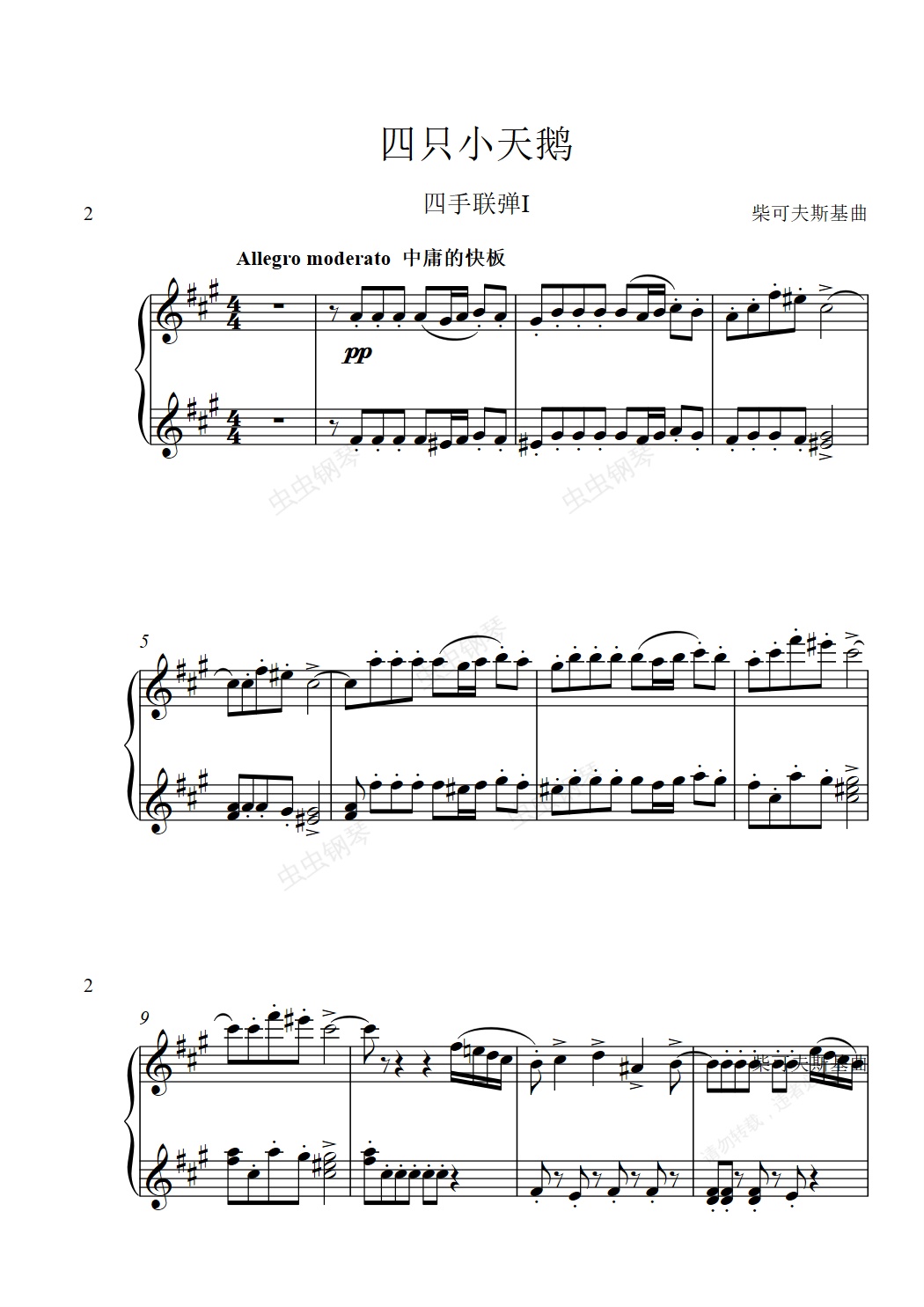 钢琴谱:86四只小天鹅01