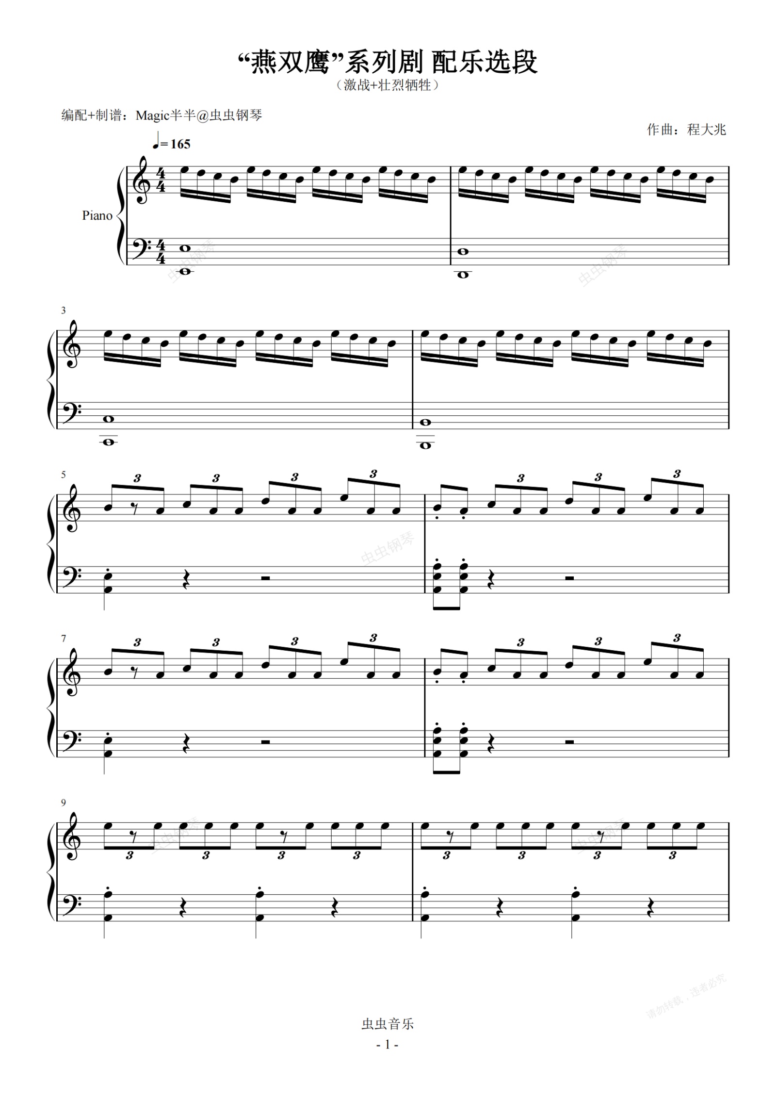 钢琴谱:燕双鹰bgm:激战