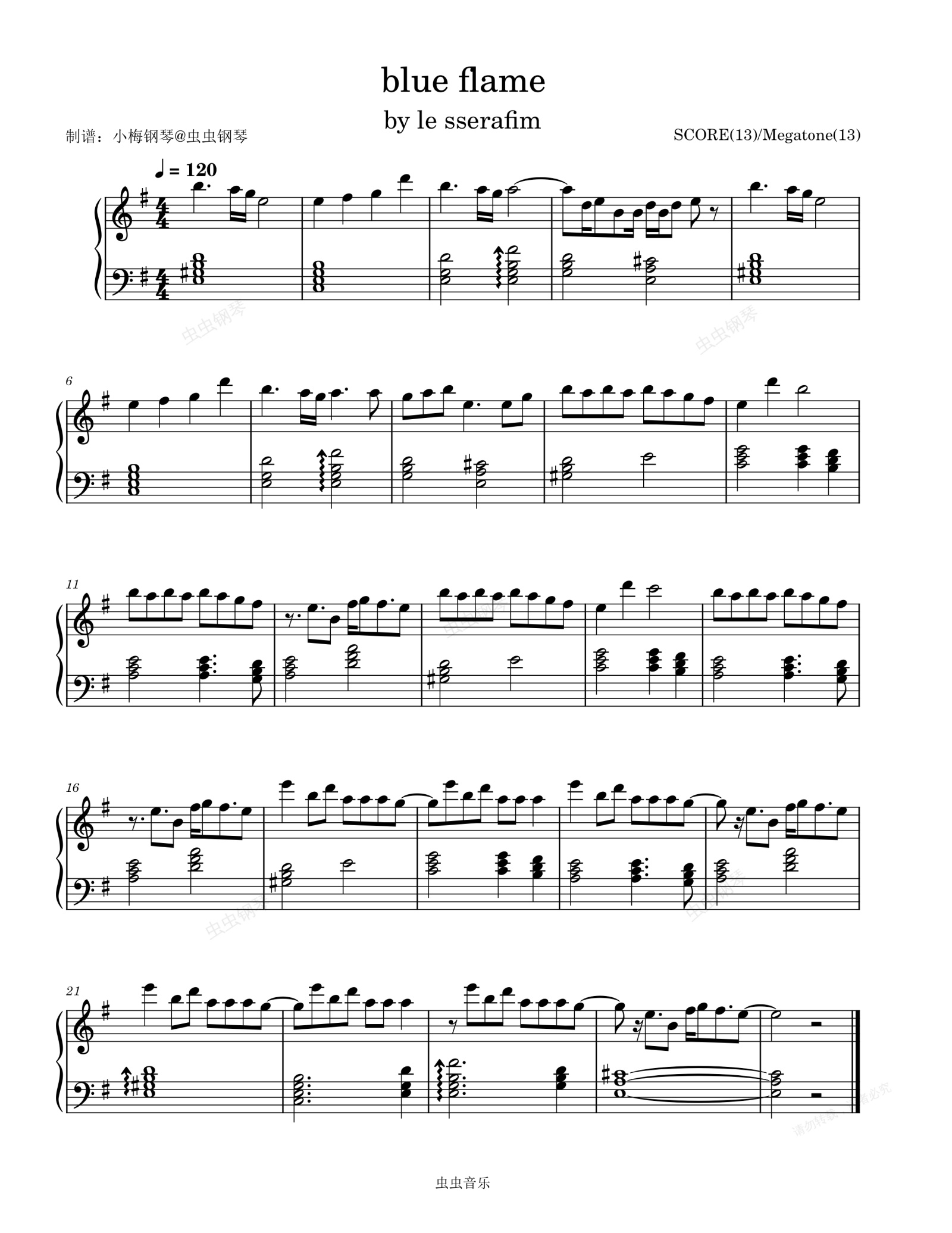 钢琴谱:Blue Flame - LE SSERAFIM【初学简易版】