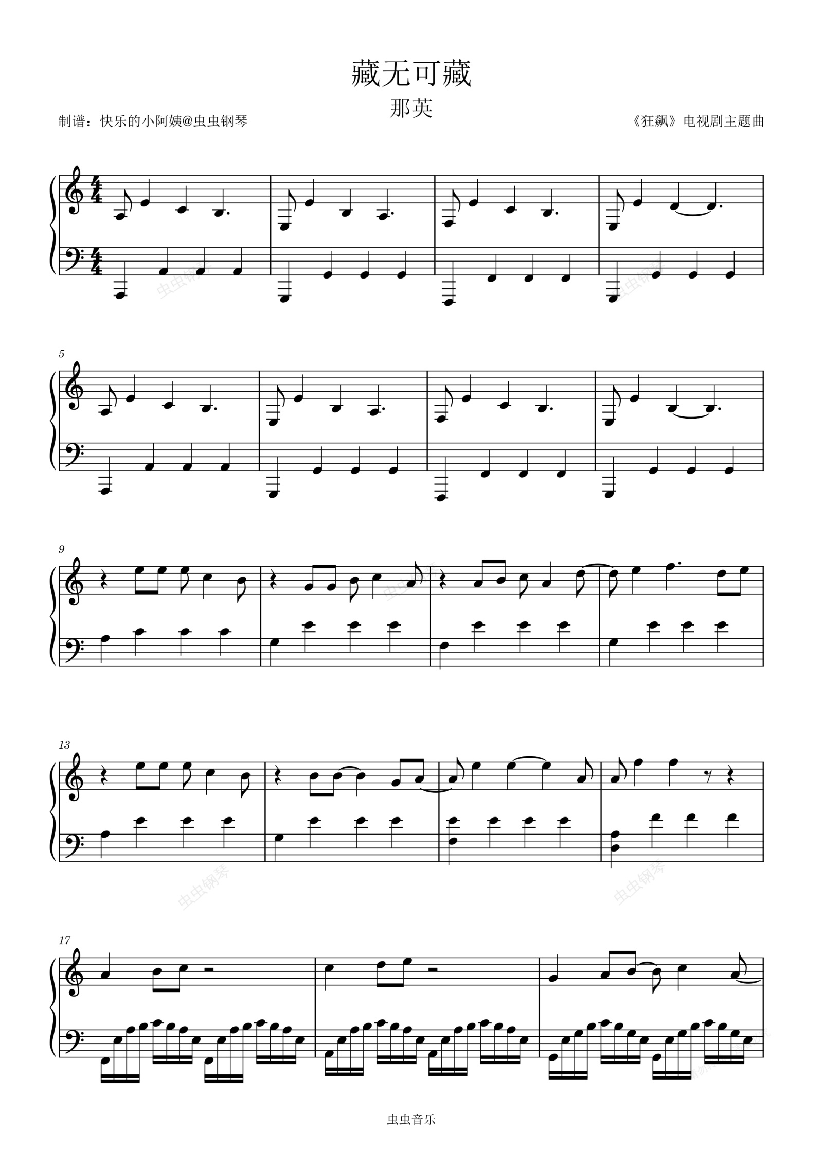 钢琴谱:藏无可藏《狂飙》电视剧主题曲 那英-C调