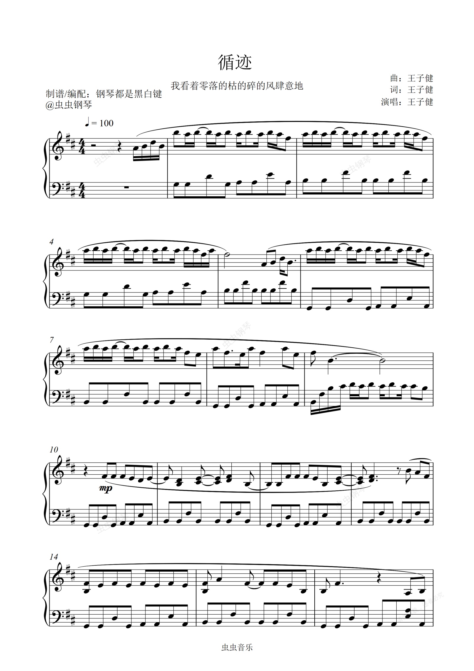 钢琴谱:循迹 - 王子健 [钢琴演奏版好听易弹]