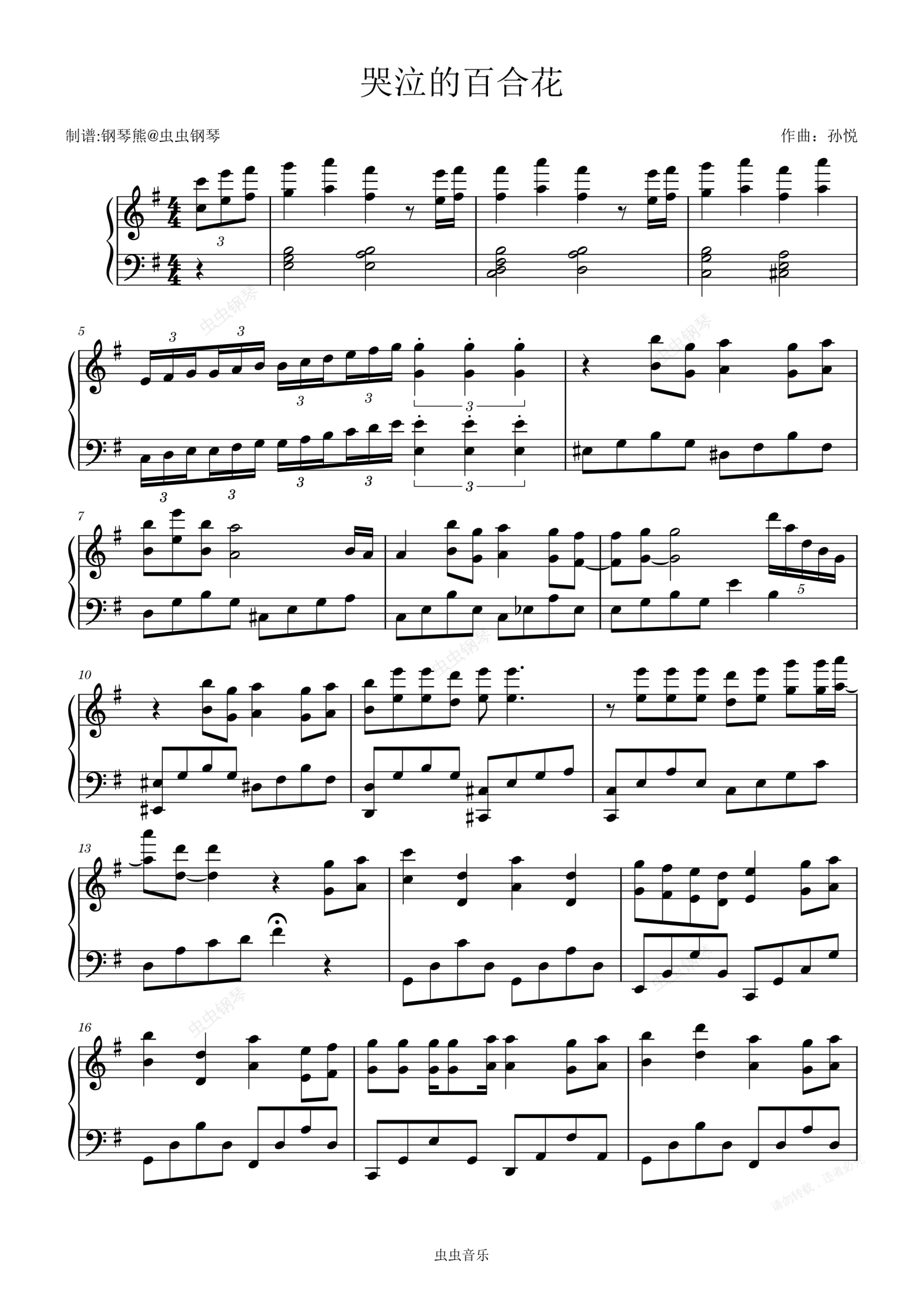 钢琴谱:《哭泣的百合花》粉丝点谱成功~喜欢的兄弟记得点♥♥♥👇👇👇