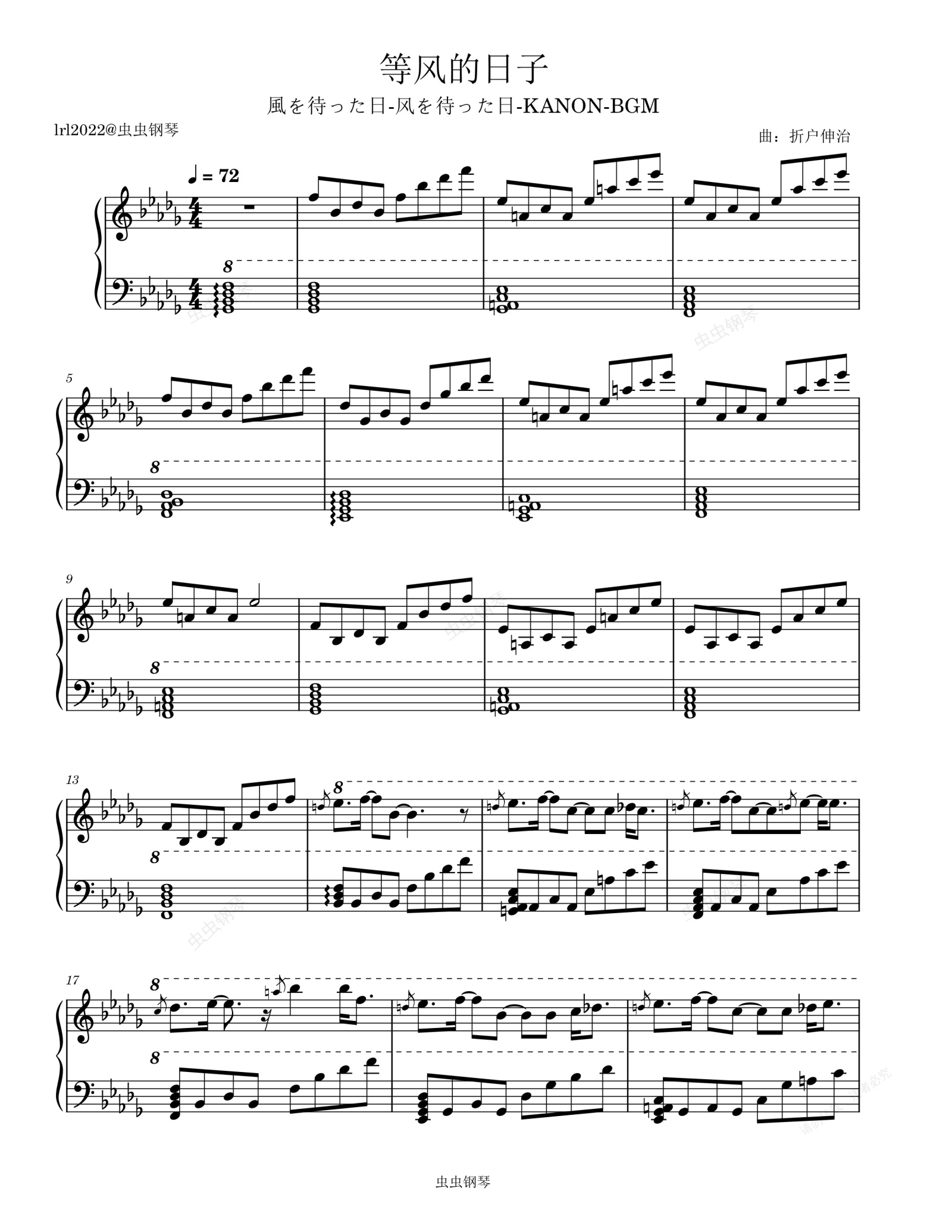 钢琴谱:等风的日子-KANON BGM-風を待った日-风を待った日-独奏谱
