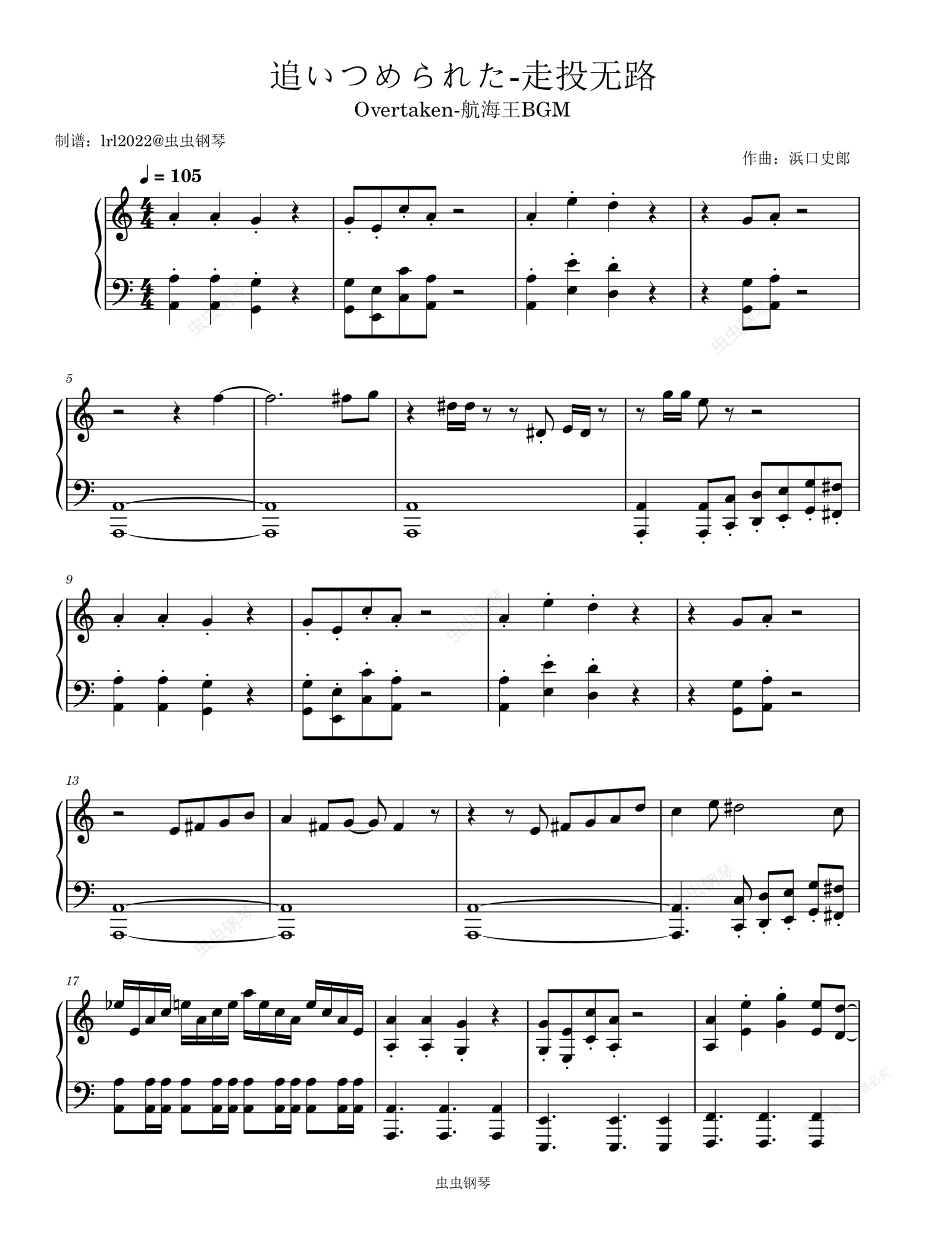 钢琴谱:追いつめられた-走投无路-Overtaken-航海王BGM