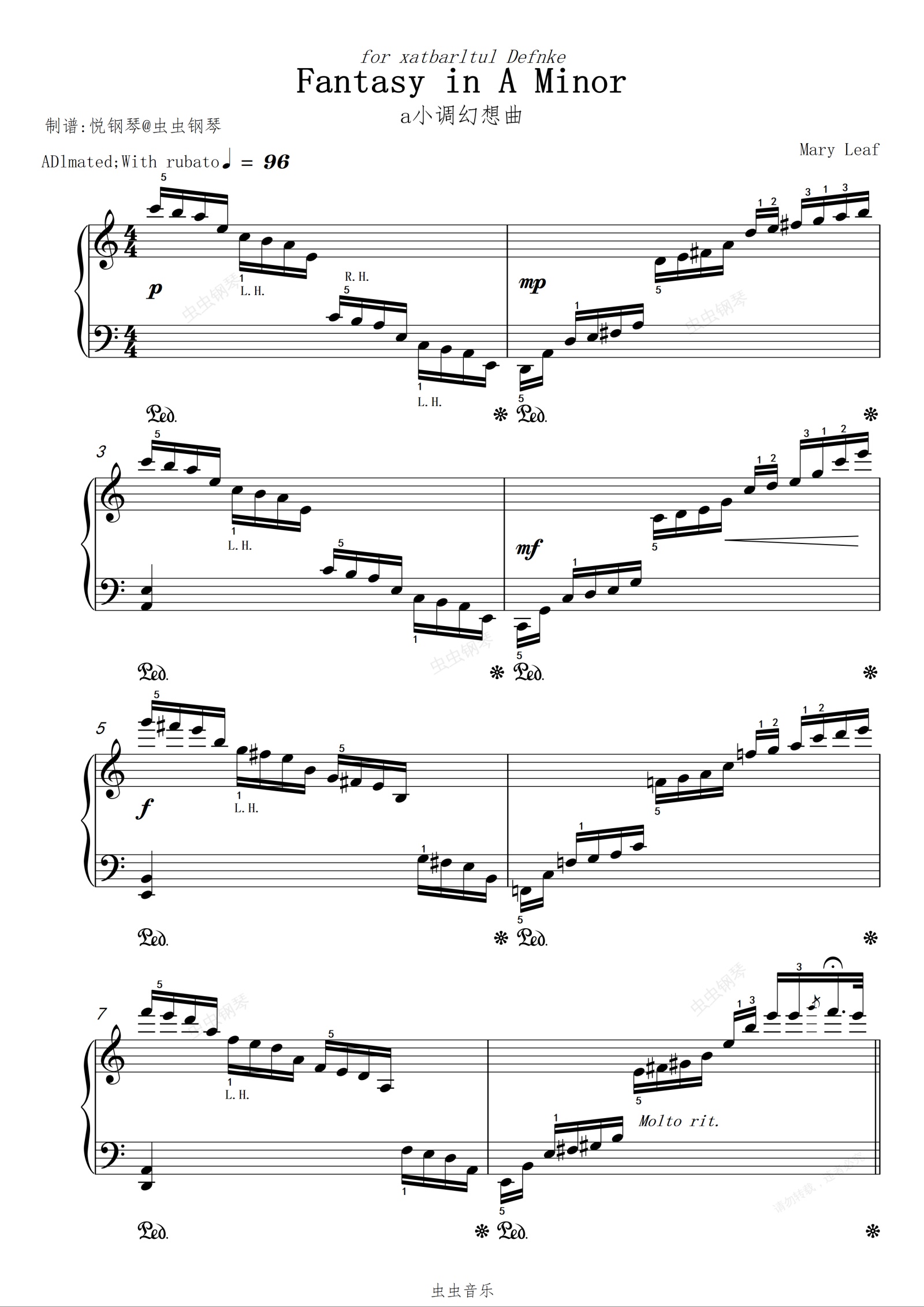 钢琴谱:a小调幻想曲//Fantasy in A Minor【优美-超好听】