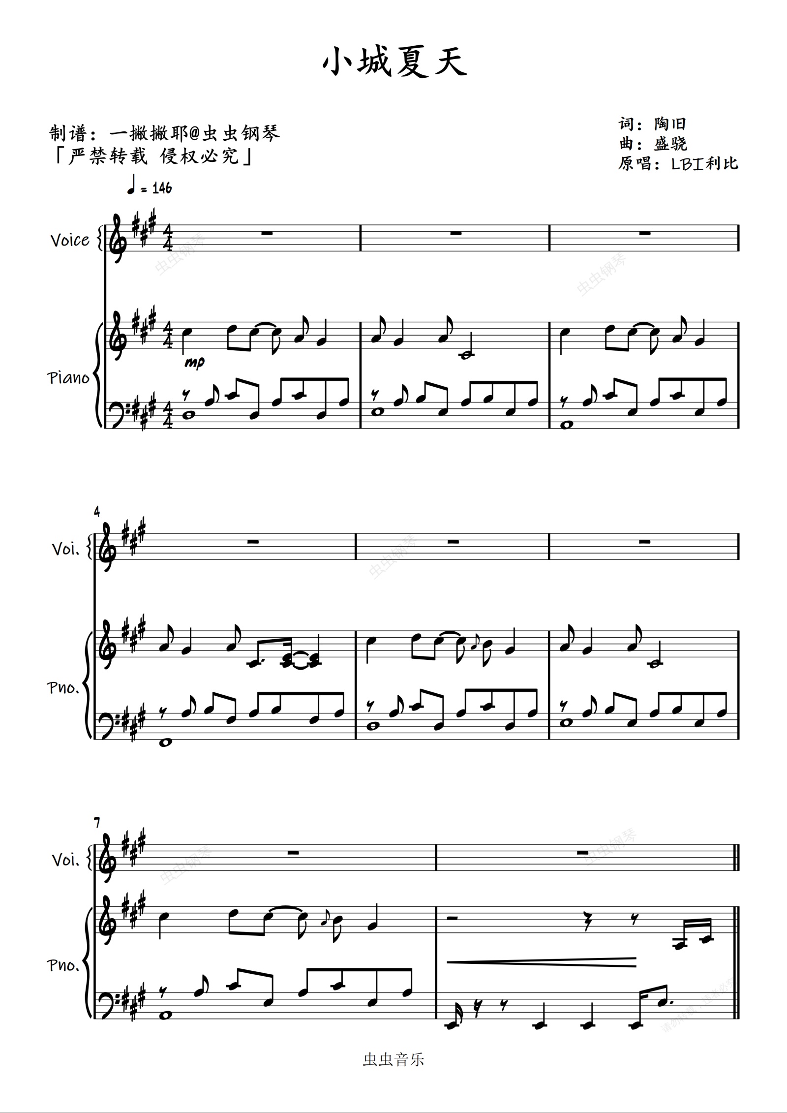 钢琴谱:小城夏天【弹唱谱】LBI利比「一撇撇耶」
