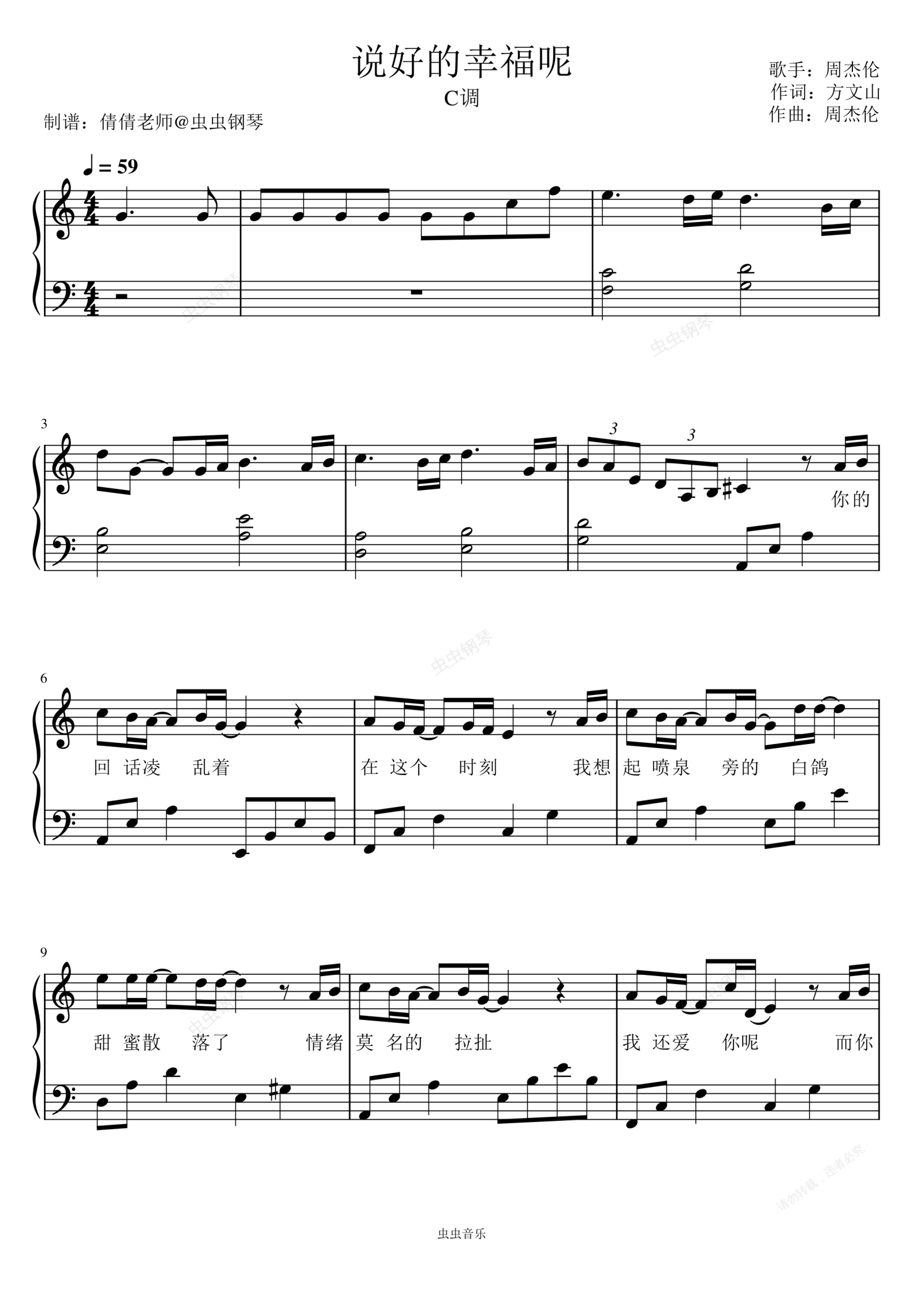 钢琴谱:说好的幸福呢-初学简易C调-周杰伦
