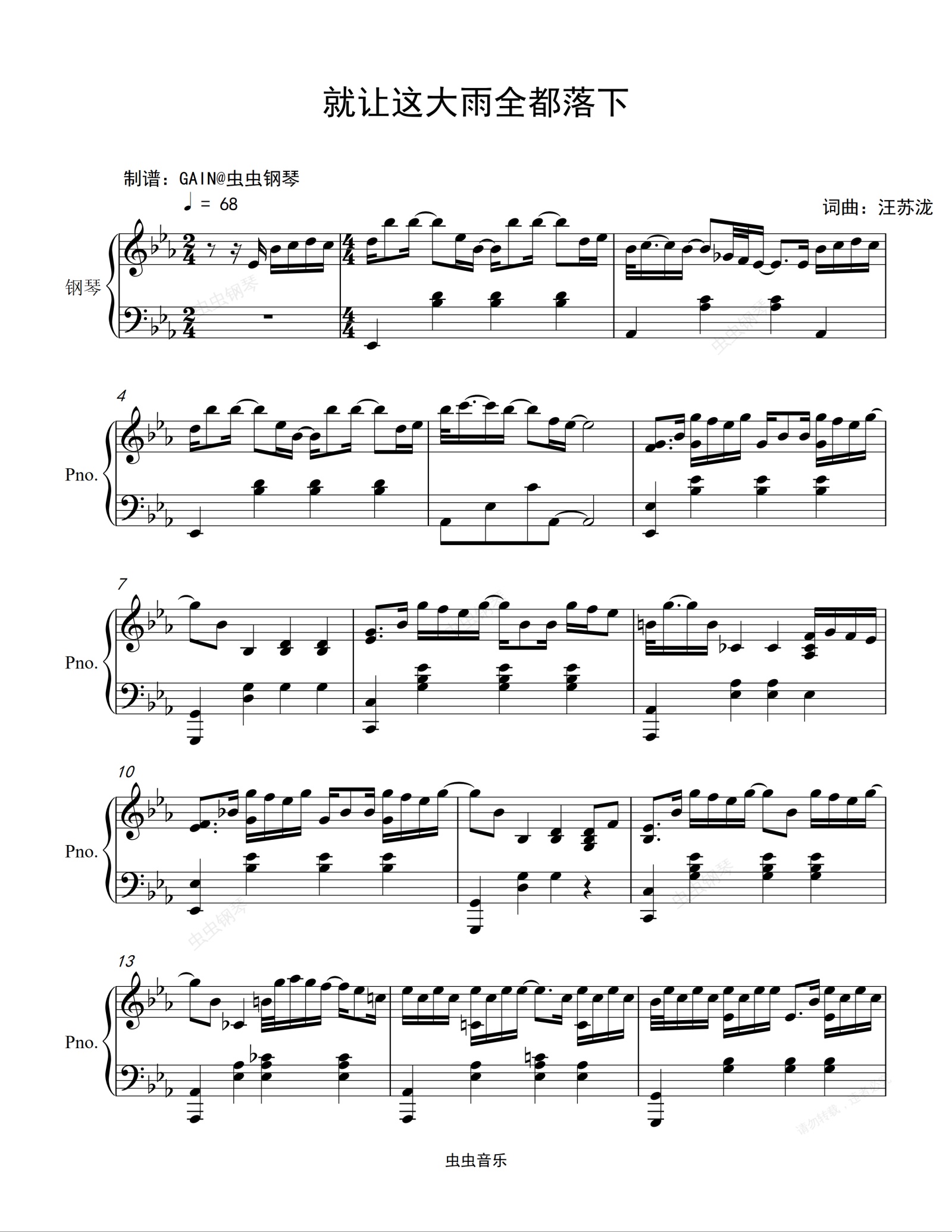 钢琴谱:就让这大雨全都落下-原调完整版-容祖儿