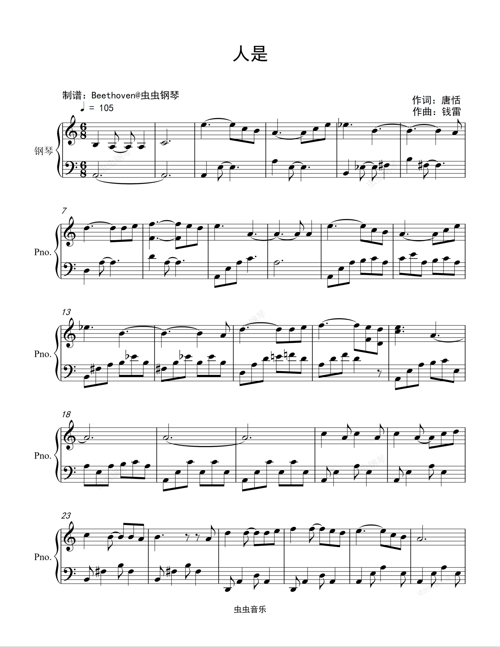 钢琴谱:人是-流浪地球2定义主题曲-周深