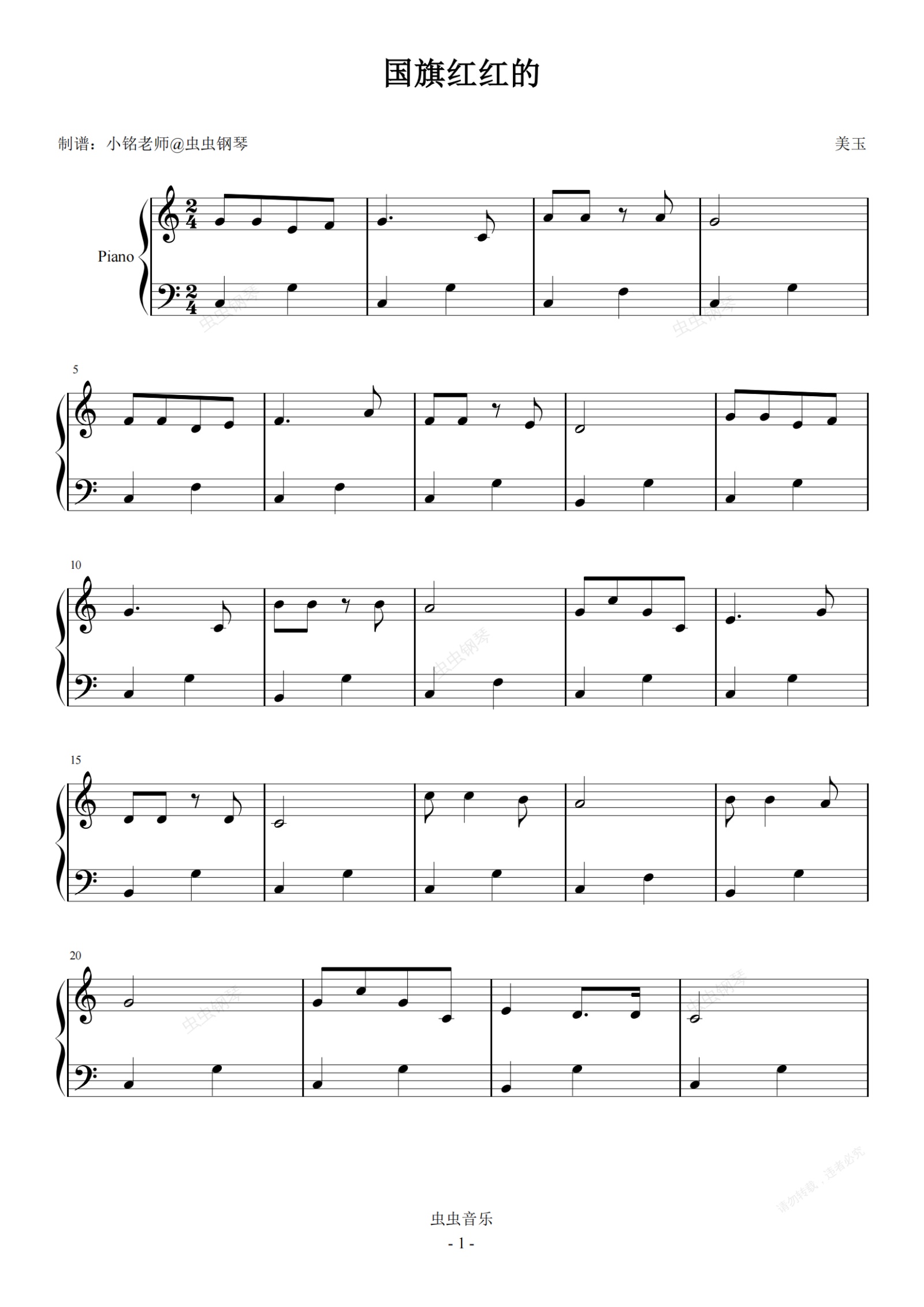 钢琴谱:国旗红红的【快乐学儿歌】