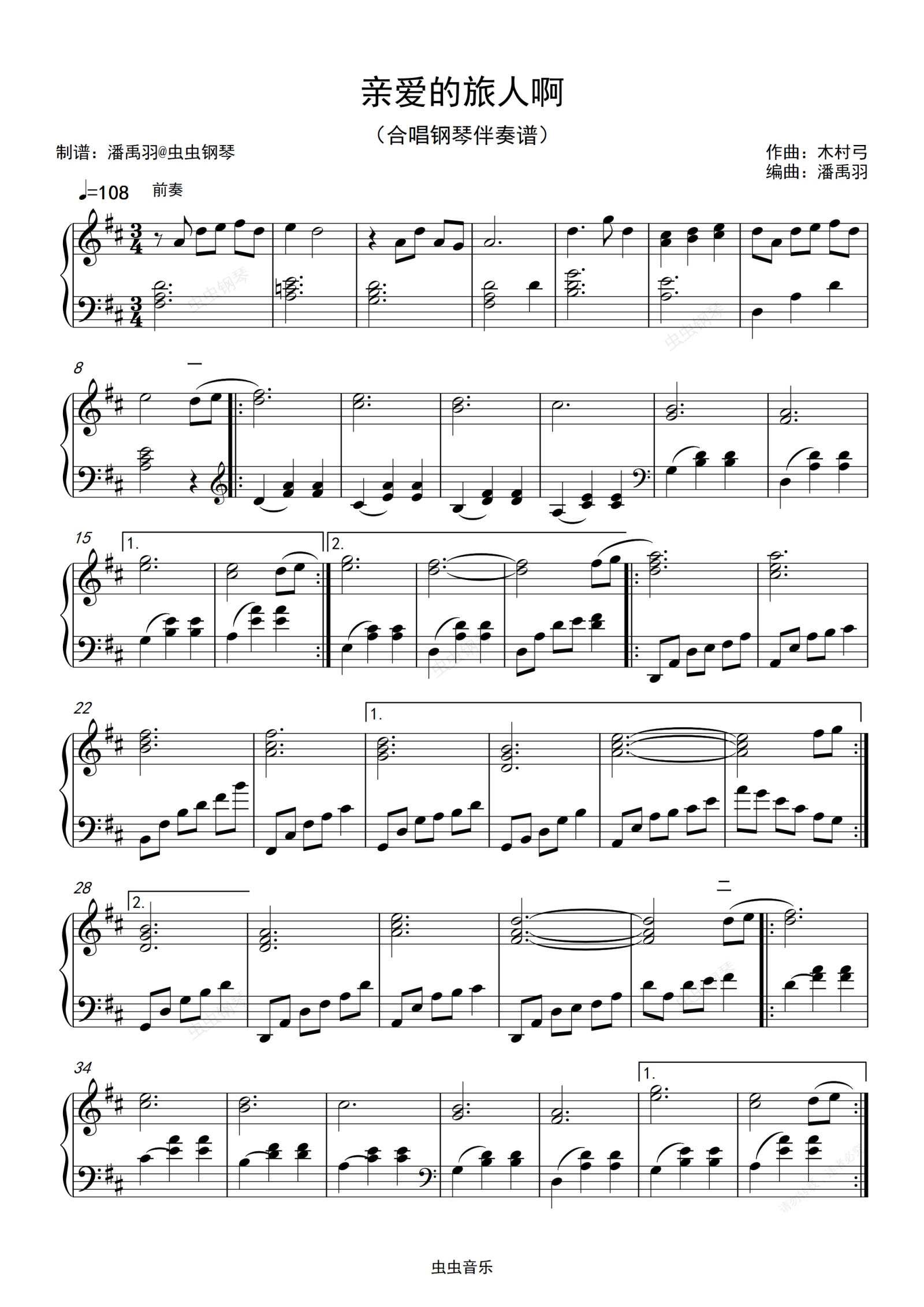 钢琴谱:亲爱的旅人啊(合唱钢琴伴奏谱)