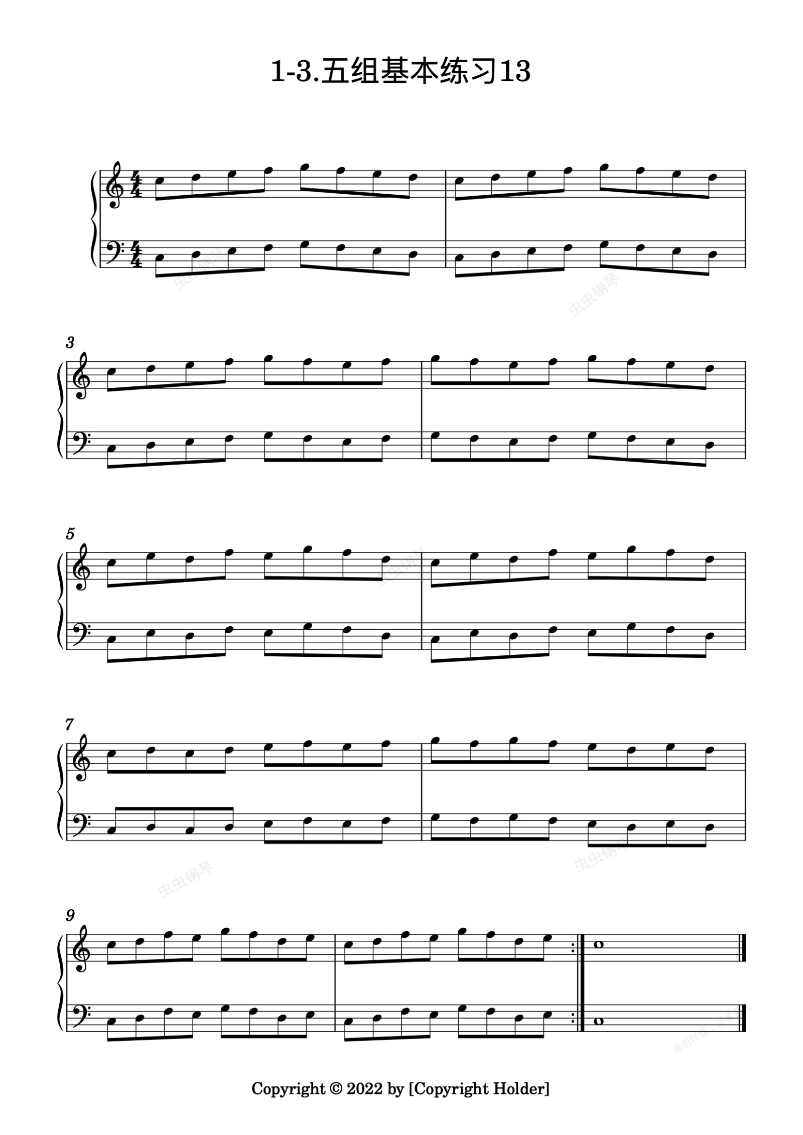 钢琴谱:1-3-五组基本练习13