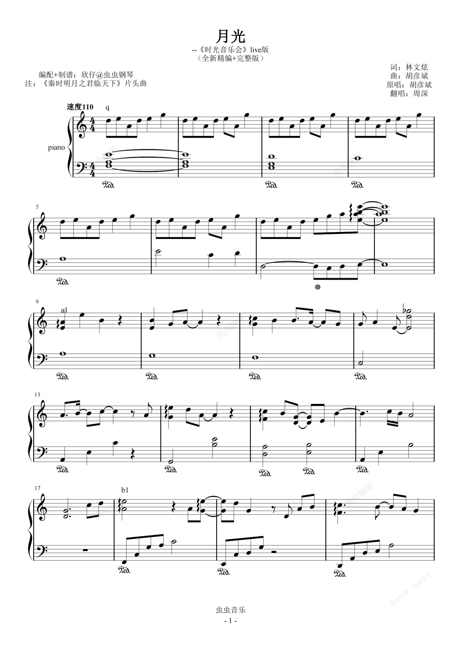 钢琴谱:周深-a《月光》(全新精编+完整版)