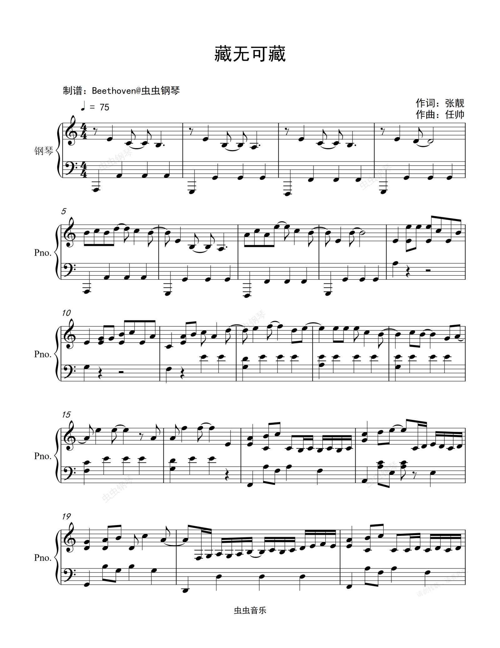 钢琴谱:藏无可藏-狂飙片尾曲-那英