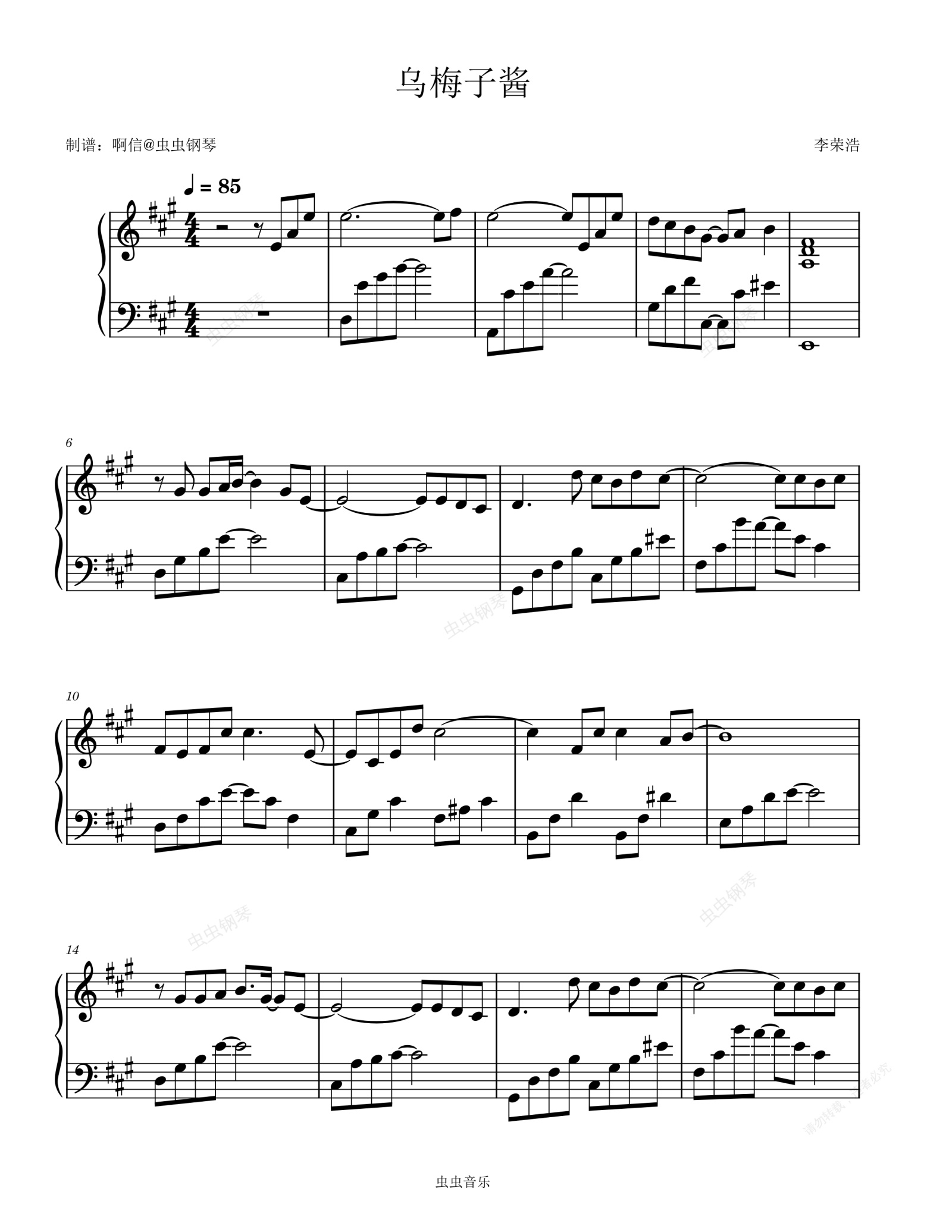 钢琴谱:乌梅子酱-李荣浩-原版啊信编配
