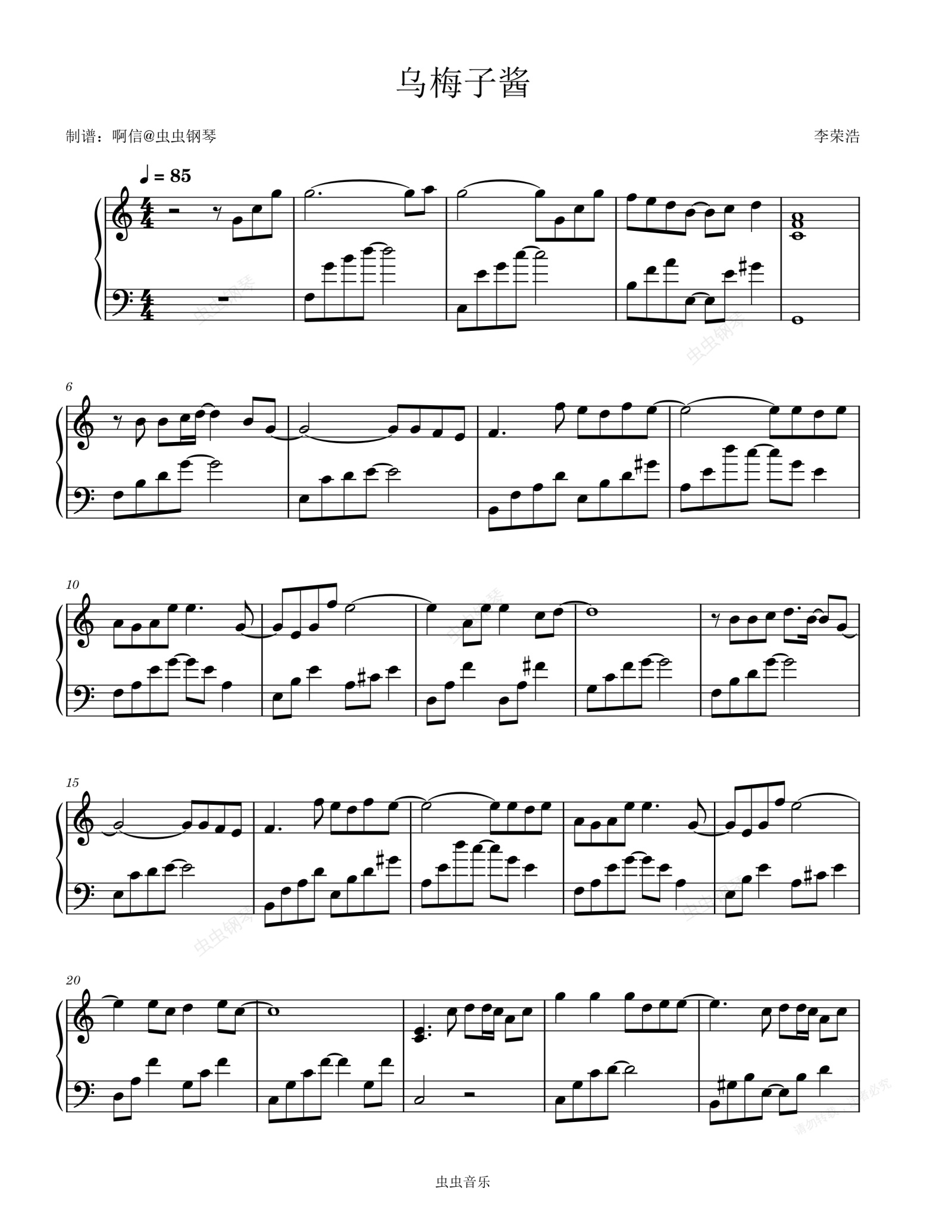 钢琴谱:乌梅子酱-李荣浩-C调啊信编配
