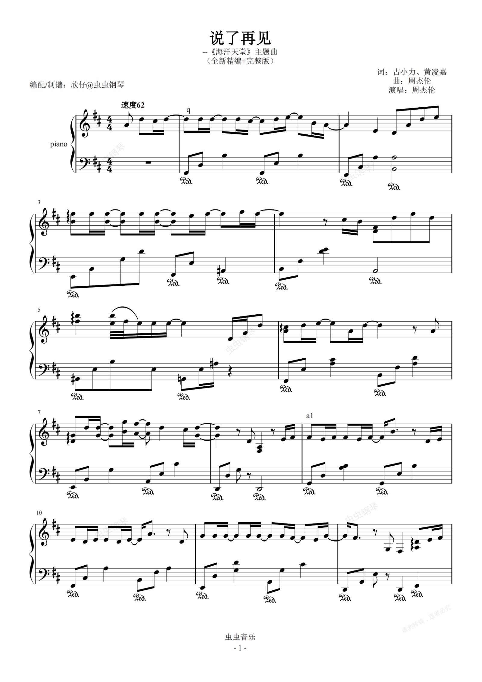 钢琴谱:周杰伦-D《说了再见》(全新精编+完整版)