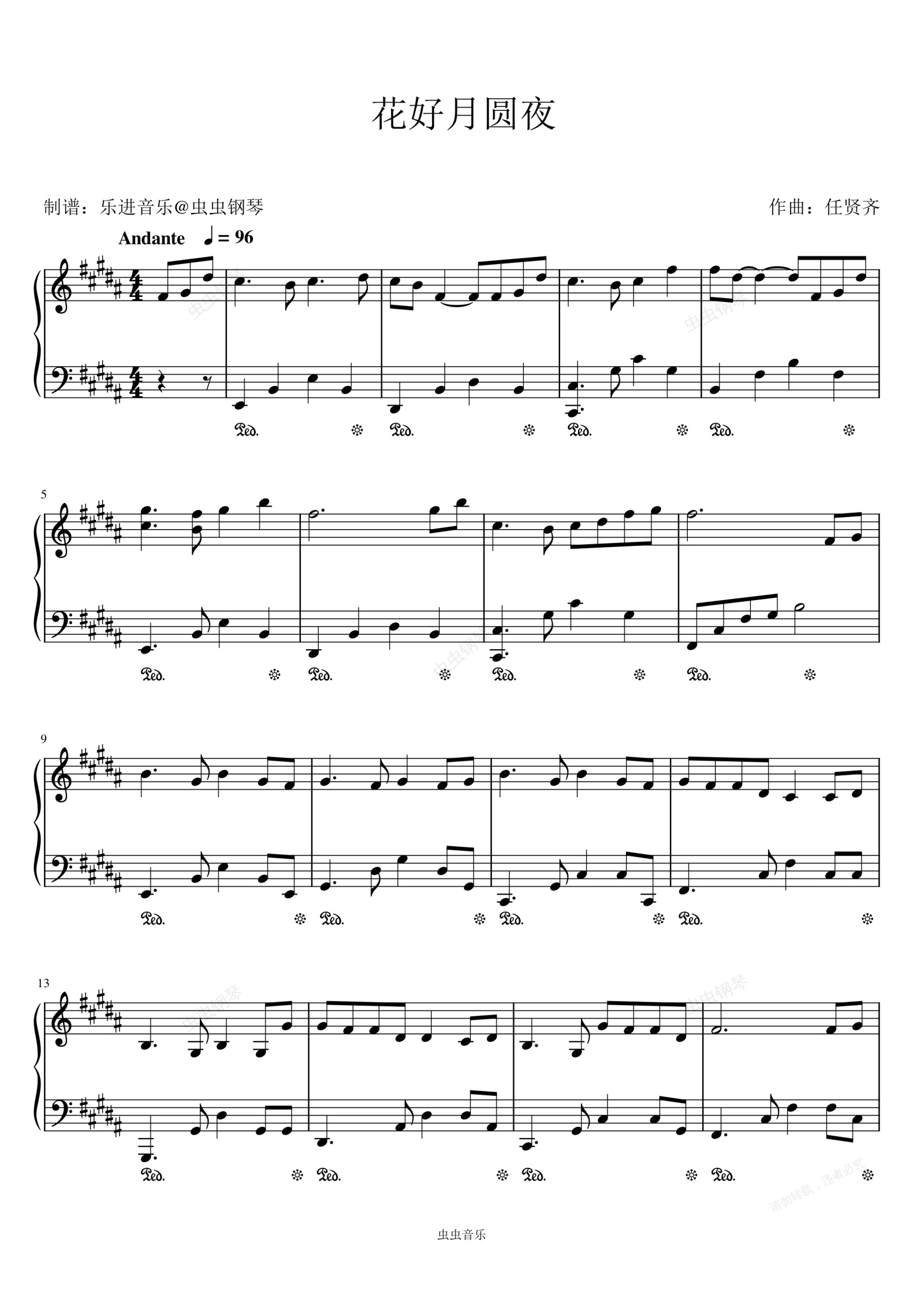 钢琴谱:《花好月圆夜》优美版