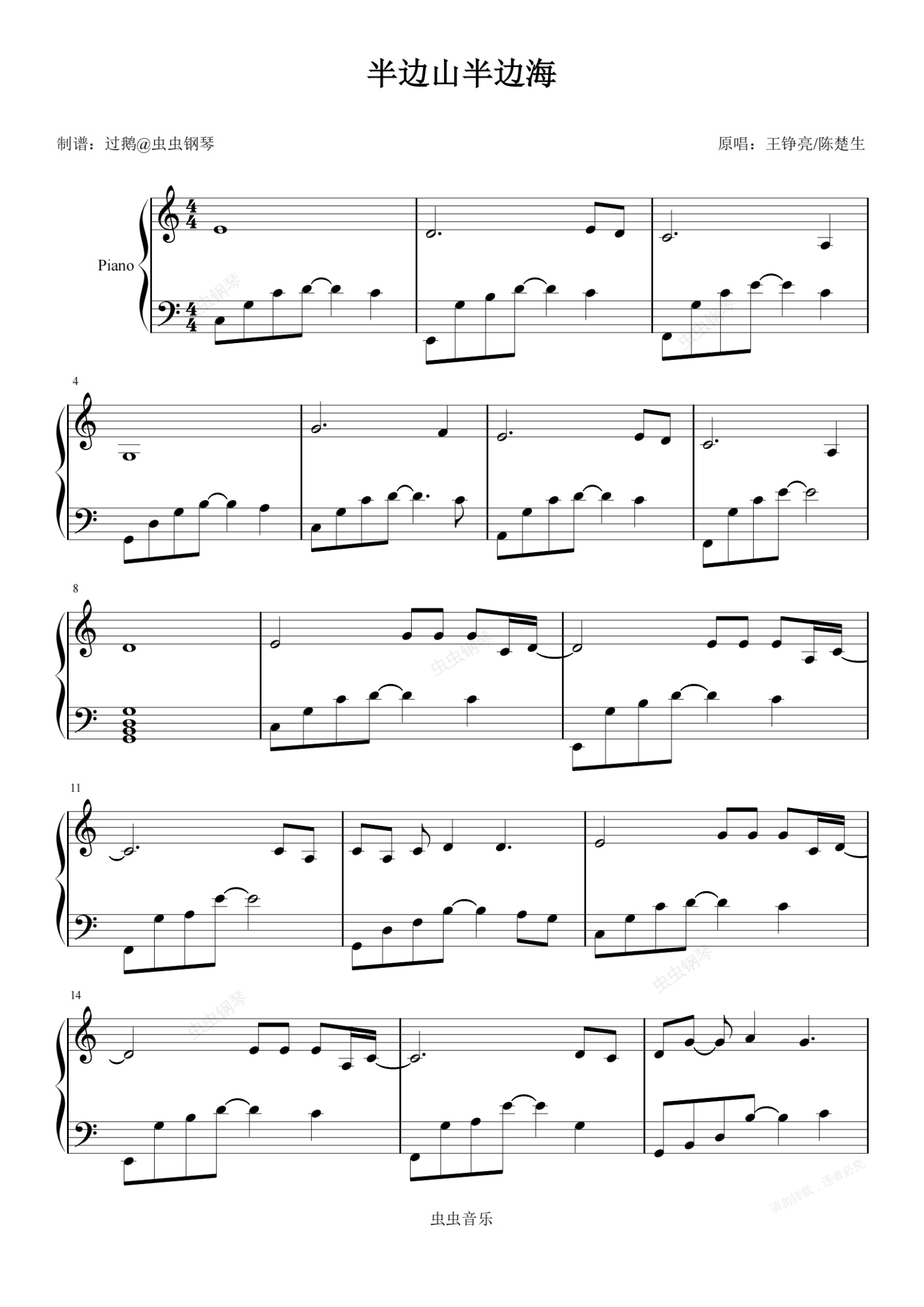 钢琴谱:半边山半边海-王铮亮/陈楚生 C调
