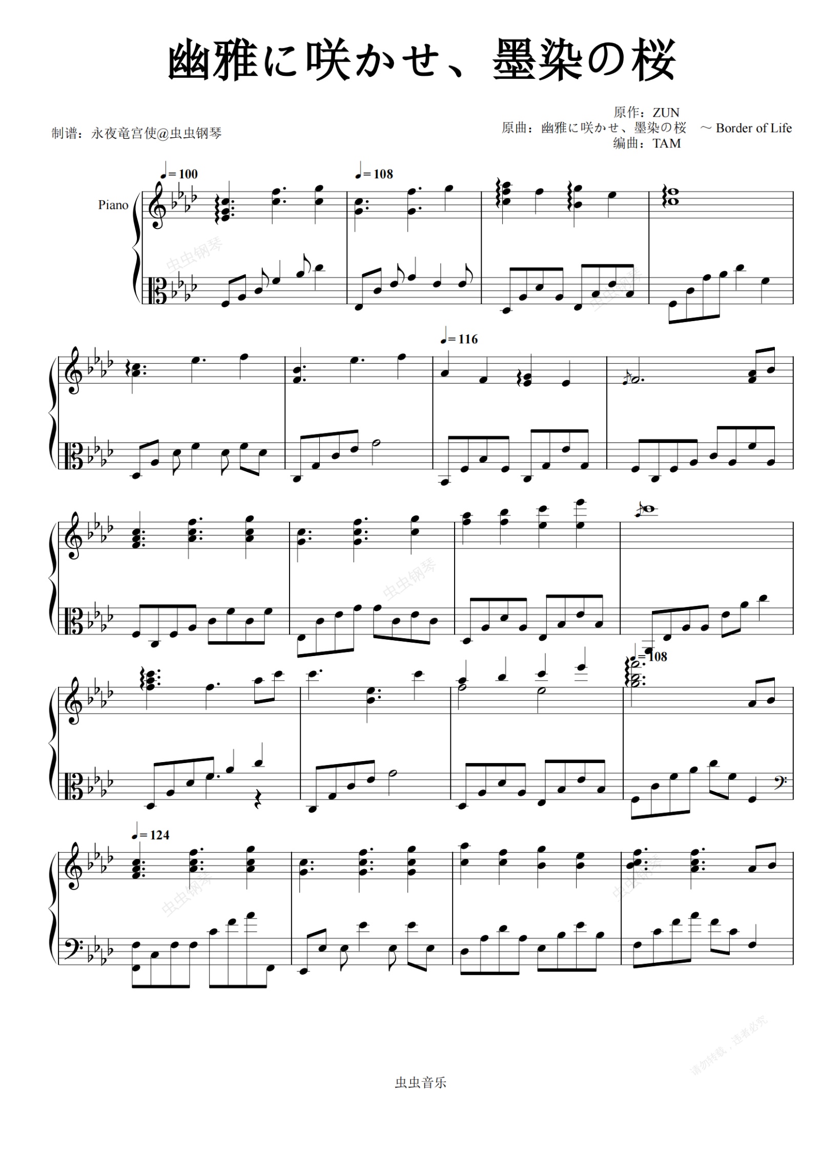 钢琴谱:幽雅に咲かせ、墨染の桜