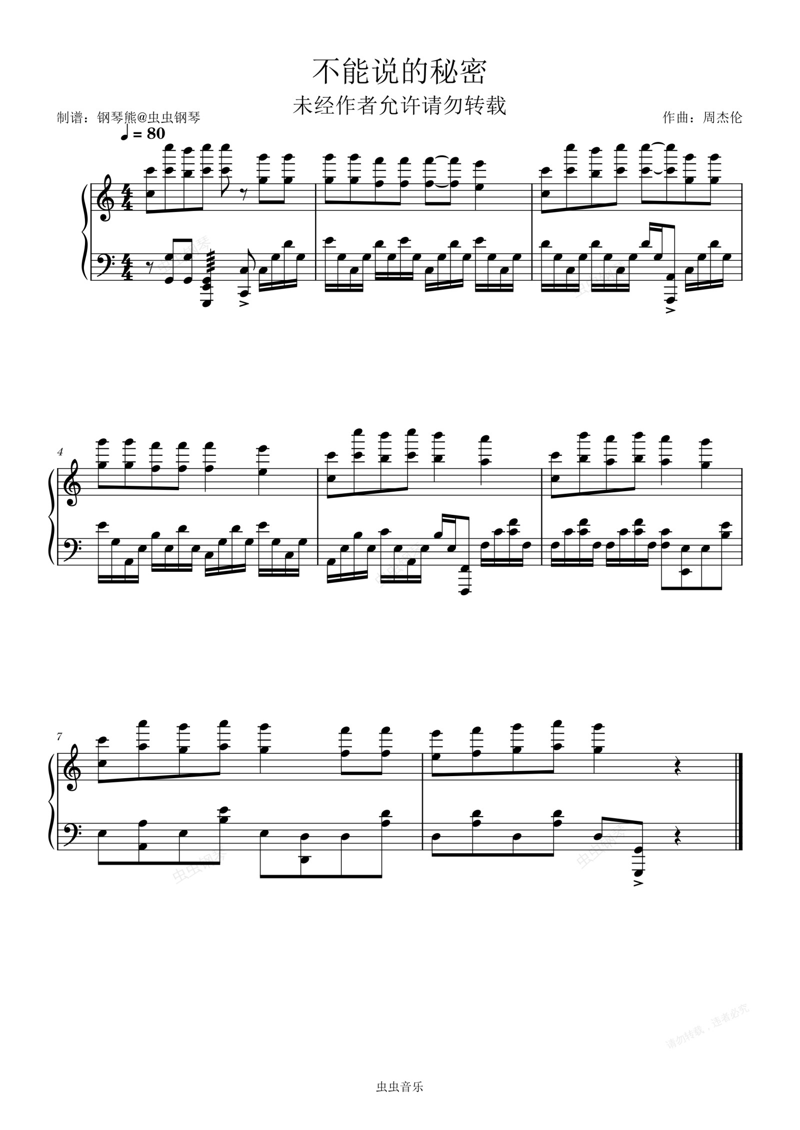 钢琴谱:C大调 抖音芳卿颜版《不能说的秘密》喜欢的兄弟记得点收藏♥♥♥👇👇👇