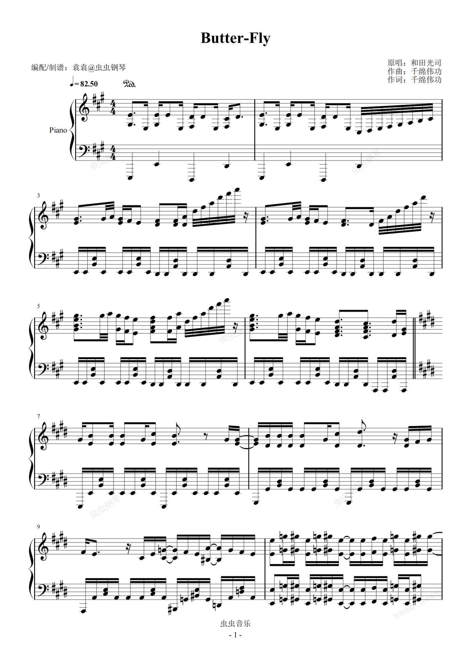 钢琴谱:Butter-Fly 数码宝贝主题曲 激进编配版 高度还原 原调