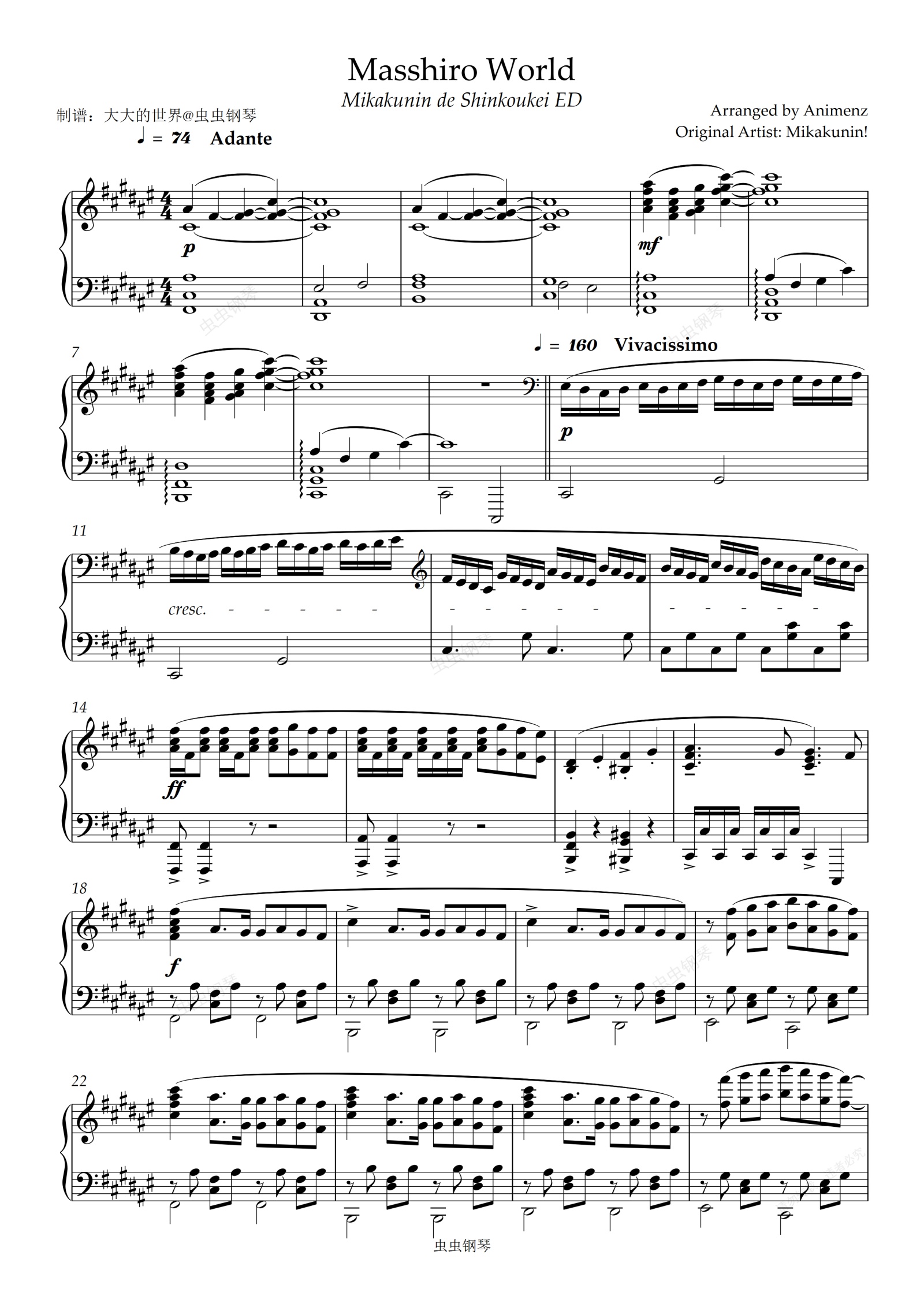 钢琴谱:【Animenz 版】Masshiro World - Mikakunin de Shinkoukei ED