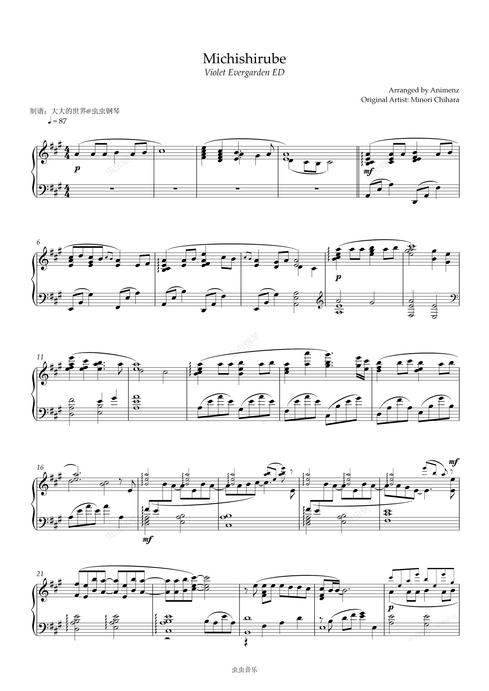 钢琴谱:【Animenz 版】Michishirube - Violet Evergarden ED