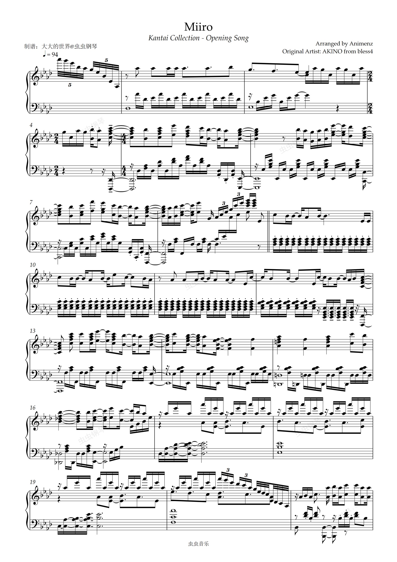 钢琴谱:【Animenz 版】Miiro - Kantai Collection OP