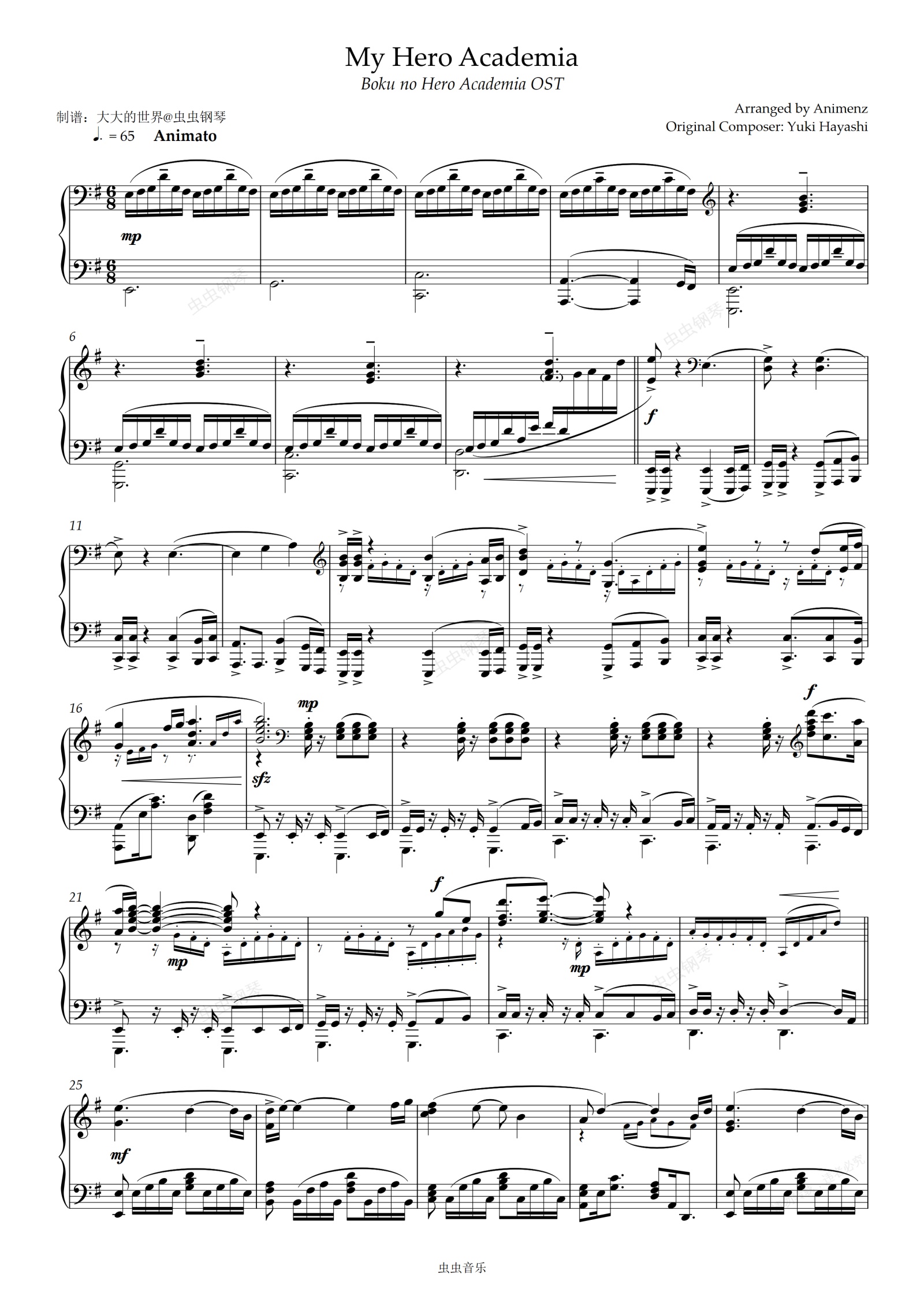 钢琴谱:【Animenz 版】My Hero Academia - Boku no Hero Academia OST