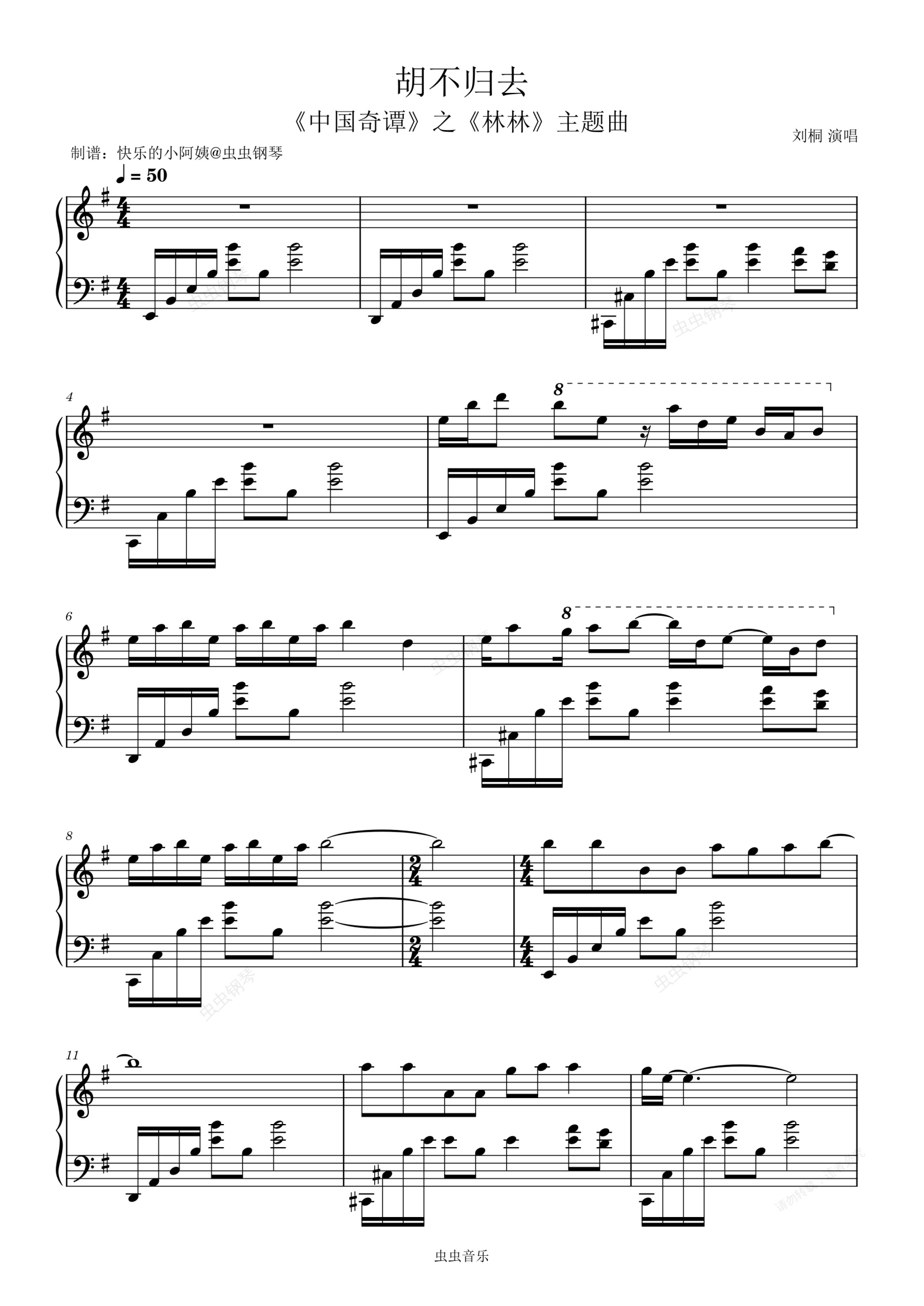 钢琴谱:胡不归去(《中国奇谭》之《林林》主题曲)刘桐